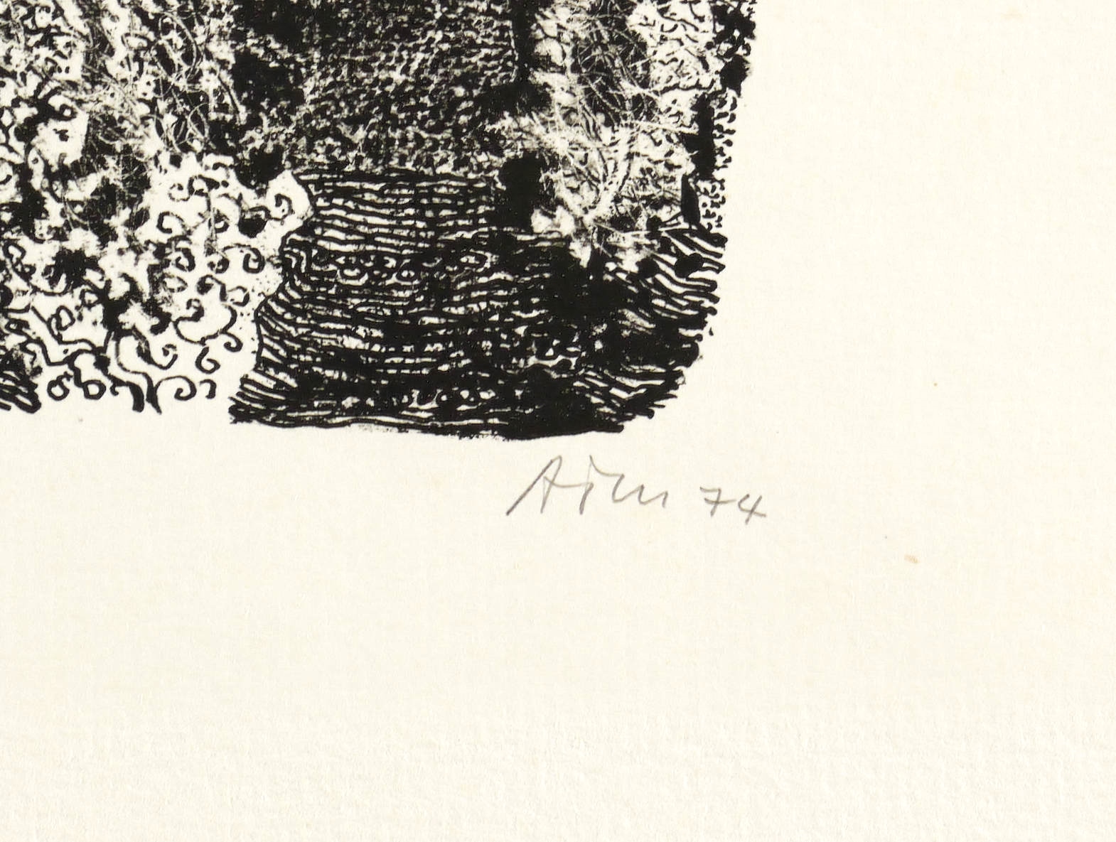 1974. Lithografie / Feder- & Pinsellithografie, in Schwarz, auf hellgelbem Weißenborn-Bütten. – Originale Künstlergrafik, von Alfred Traugott Mörstedt. – Auflage Exemplar Nr. 10/40. – 21,7 x 32,7 cm (Darstellung), 36 x 48 cm (Blatt).