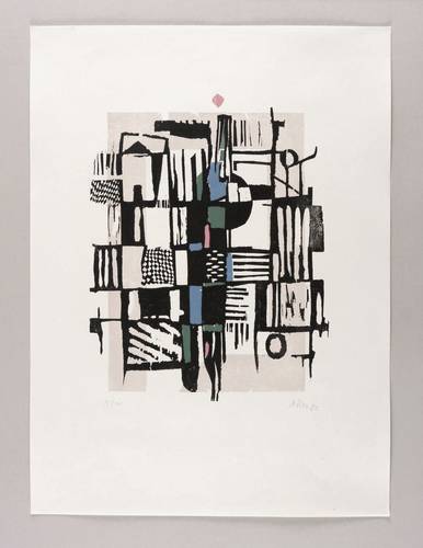1982. Farbholzschnitt, in 5 Farben, auf leichtem hellchamois Hahnemühle. – Originale Künstlergrafik, von Alfred Traugott Mörstedt. – Auflage Exemplar Nr. 15/100. – 33,9 x 26,2 cm (Darstellung), 54 x 40 cm (Blatt).