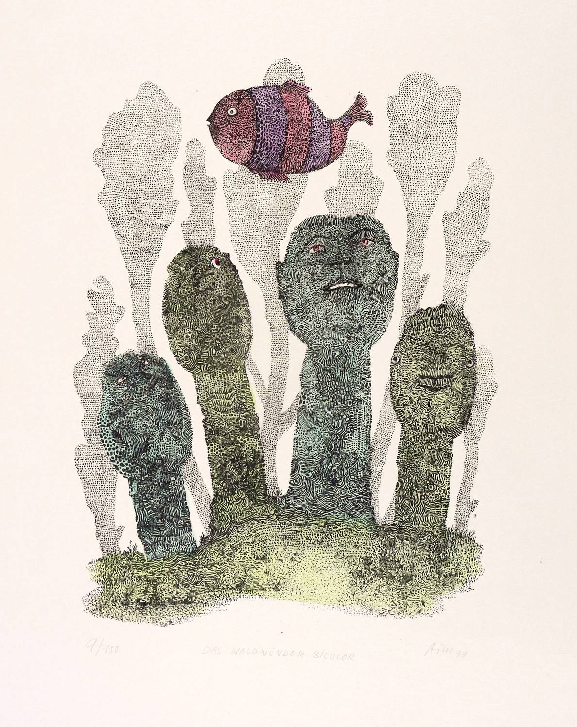 Mörstedt G 94. – Rechts unten in Bleistift signiert und datiert: ″ATM 77″. Links Auflagenbezeichnung: ″9/150″. Mittig Titel: ″ADS WALDWUNDER BICOLOR″. – Vom Künstler handkoloriert. – Tadellos erhalten. Sehr guter Zustand.