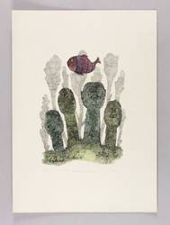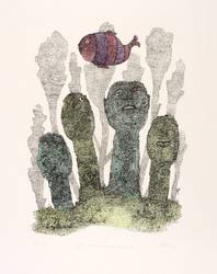 1977. Lithografie / Federlithografie, in Schwarz, aquarelliert, auf glattem hellchamois Velinkarton. – Originale Künstlergrafik, von Alfred Traugott Mörstedt. – Auflage Exemplar Nr. 9/150. – 27,7 x 20,7 cm (Darstellung / Druckbild), 49 x 35 cm (Blatt).