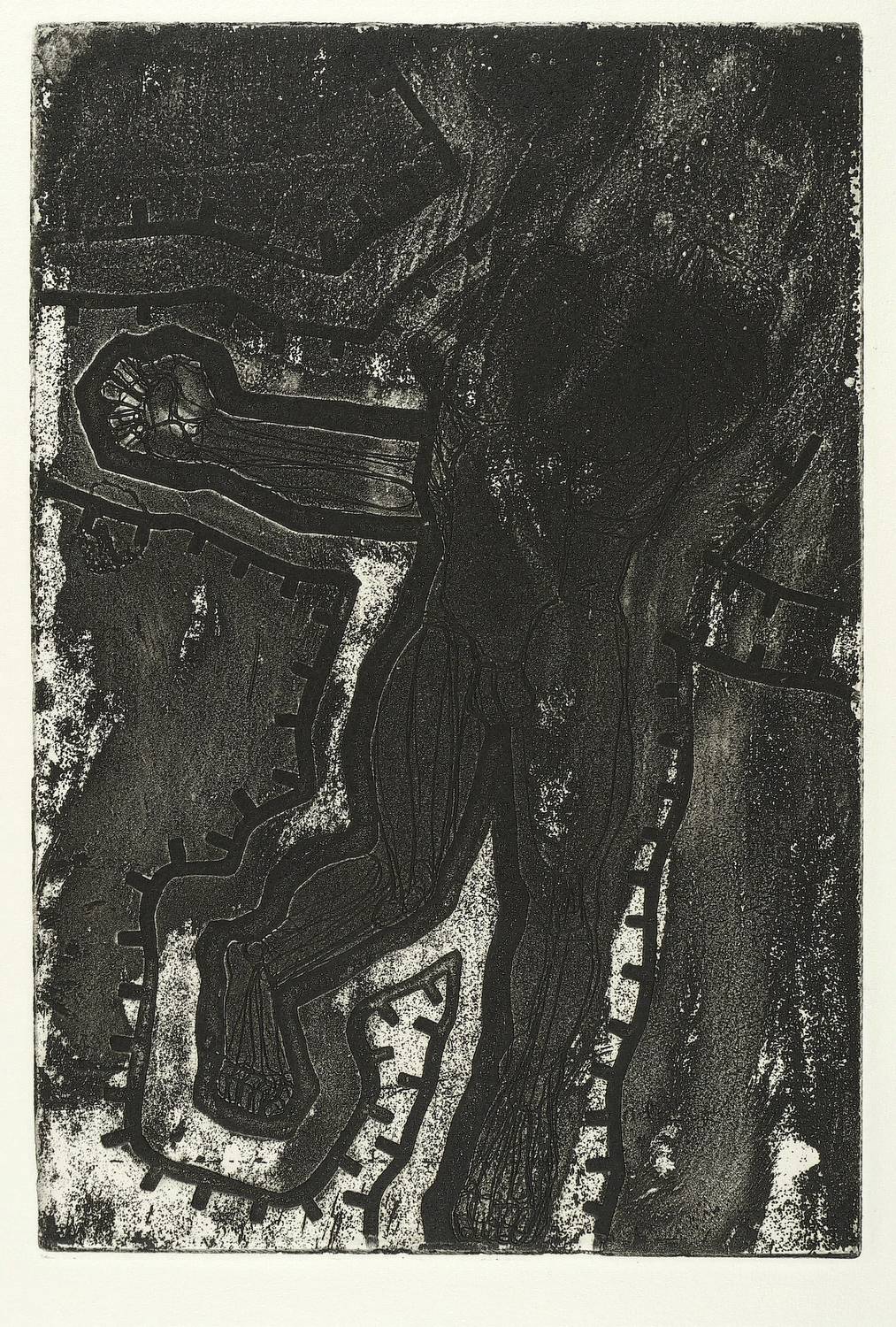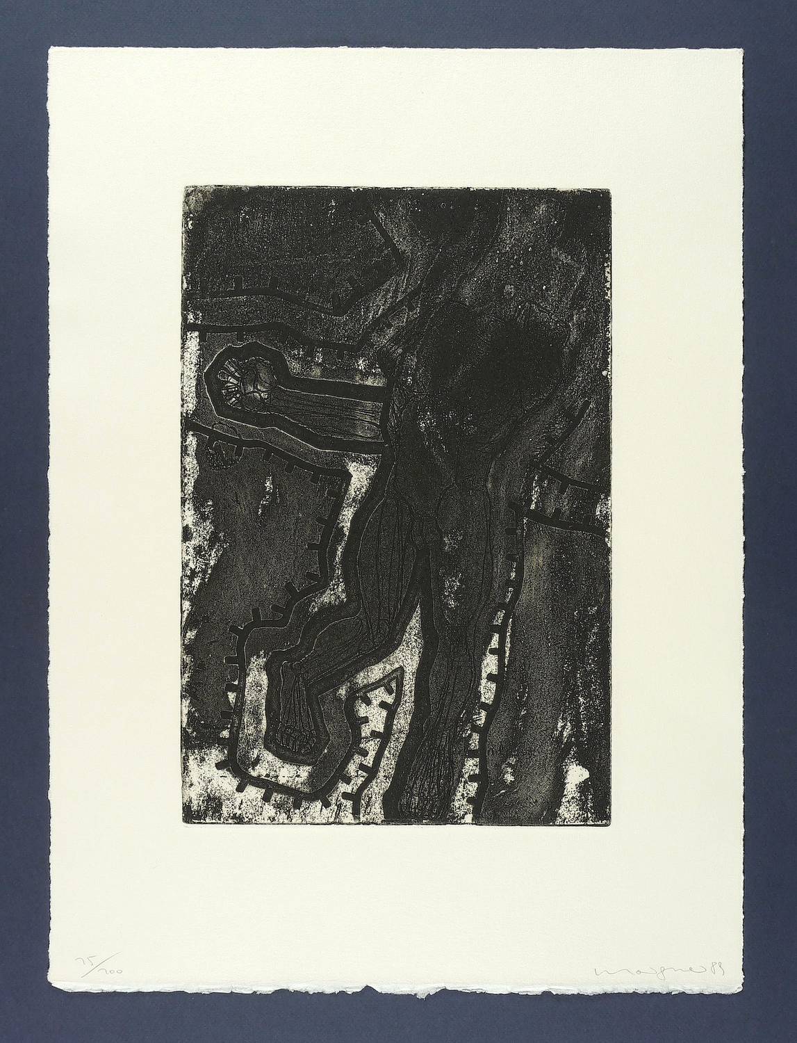 1989. Radierung / Strichätzung & Aquatinta, in Schwarz, auf schwerem hellchamois Hahnemühle. – Originale Künstlergrafik, von Michael Morgner. – Auflage Exemplar Nr. 15/100. – 36,4 x 24,5 cm (Darstellung / Platte), 54 x 40 cm (Blatt).