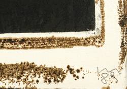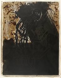 1989. Mischtechnik / Tusche & Schablone, in Braun, über Radierung mit Prägedruck, auf Büttenkarton. – Originale Künstlergrafik, von Michael Morgner. – Unikat. – 70,0 x 53,5 cm (Blatt).