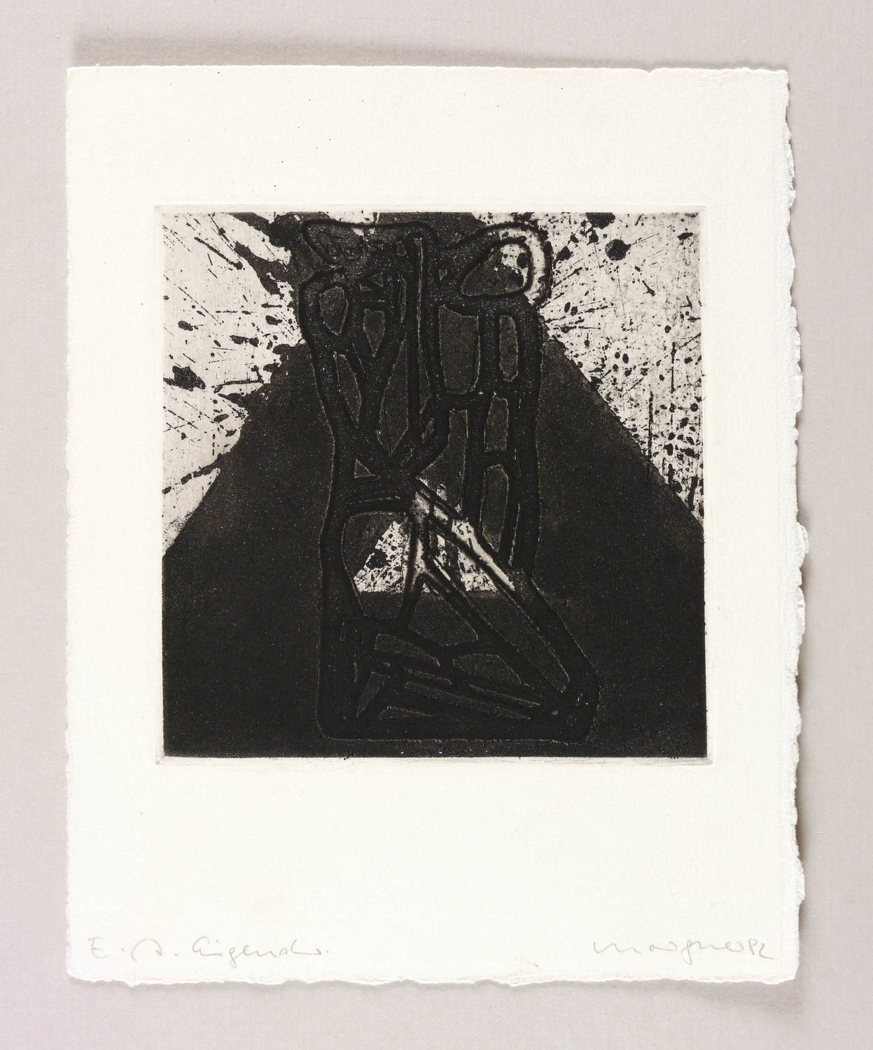 1982. Radierung / Aquatinta, in Schwarz, auf schwerem Hahnemühle-Bütten. – Von Michael Morgner. – Künstlerexemplar (e.a.). – 12,9 x 12,7 cm (Darstellung / Platte), 22 x 17 cm (Blatt).