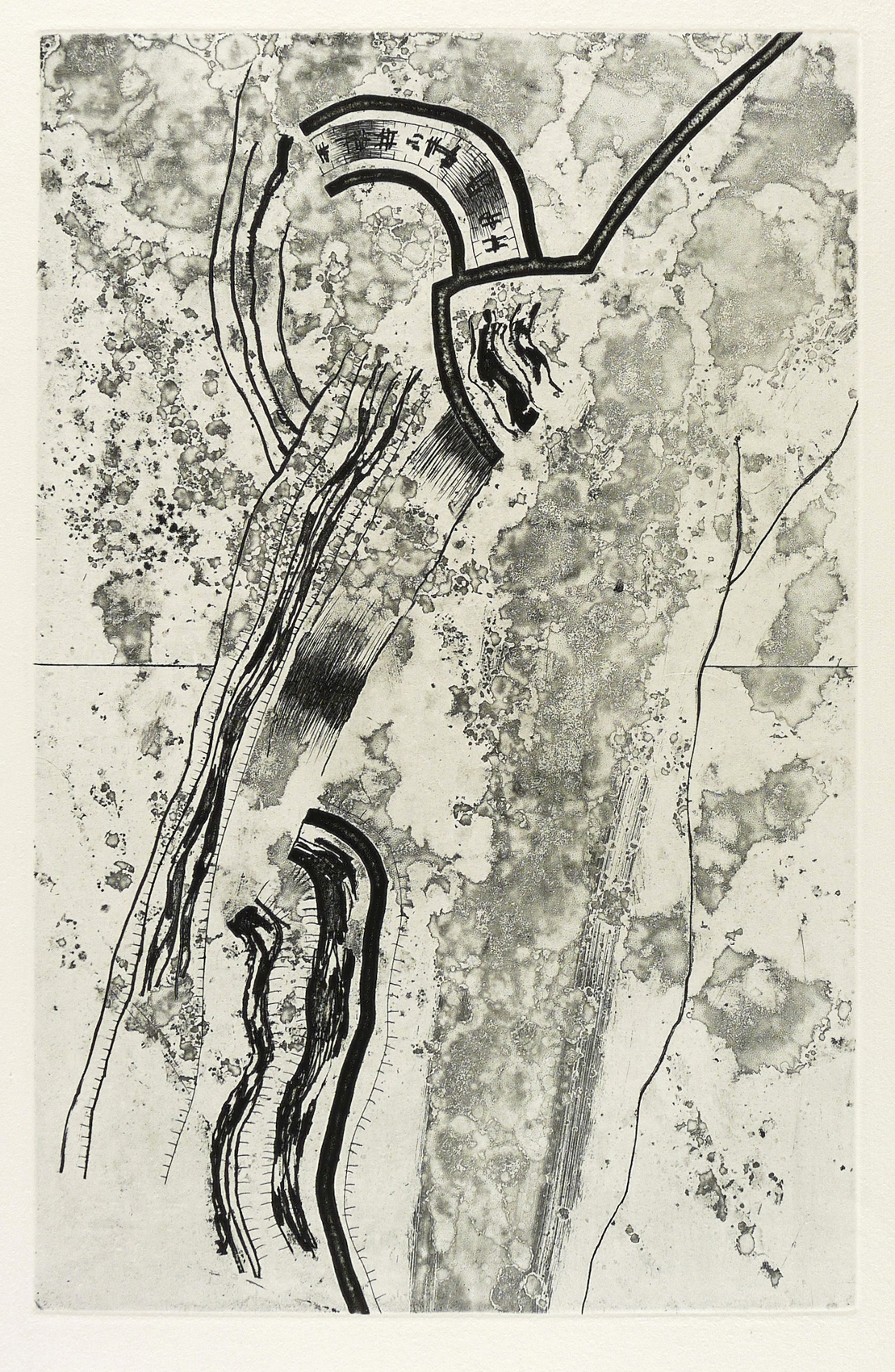 1974/1992. Radierung / Strichätzung & Aquatinta, in Schwarz, auf schwerem hellchamois Hahnemühle-Bütten. – Originale Künstlergrafik, von Michael Morgner. – Auflage 395 Exemplare. – 49,8 x 32,0 cm (Darstellung / Platte), 73 x 54 cm (Blatt).