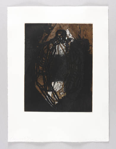 1985. Farbradierung / Aquatinta & Reservage, in Braun & Schwarz, auf Büttenpapier. – Originale Künstlergrafik, von Michael Morgner. – Auflage Exemplar Nr. 35/100. – 31,2 x 24,1 cm (Darstellung / Druckbild), 32,0 x 24,8 cm (Platte), 48 x 36 cm (Blatt).