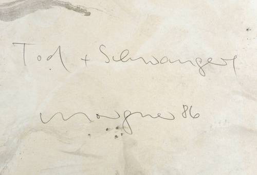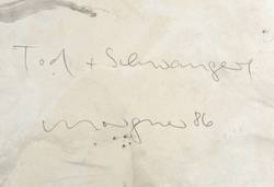 Rechts unten in Bleistift monogrammiert und datiert: ″m 86″. Verso in Bleistift nochmals signiert und datiert: ″morgner 86″. Dazu Titel: ″Tod + Schwangere″. – Provenienz: Sammlung Dr. Ingrid und Prof. Dr. Albrecht Scholz, Dresden. – Sehr guter Zustand.