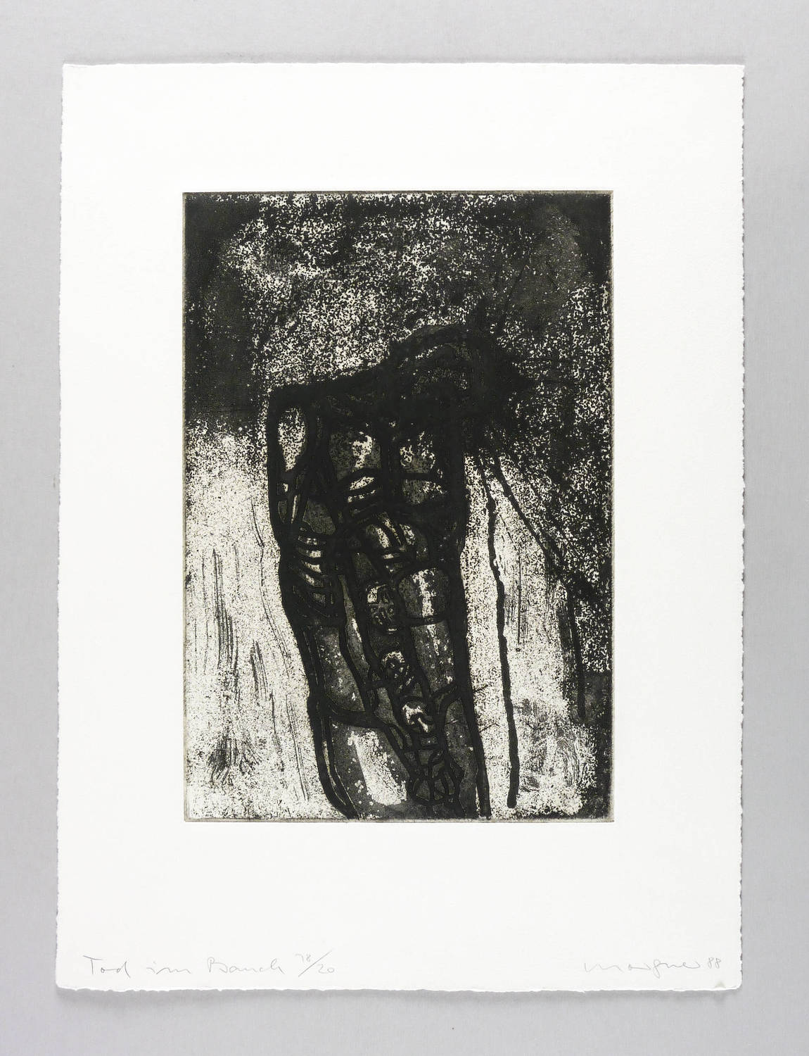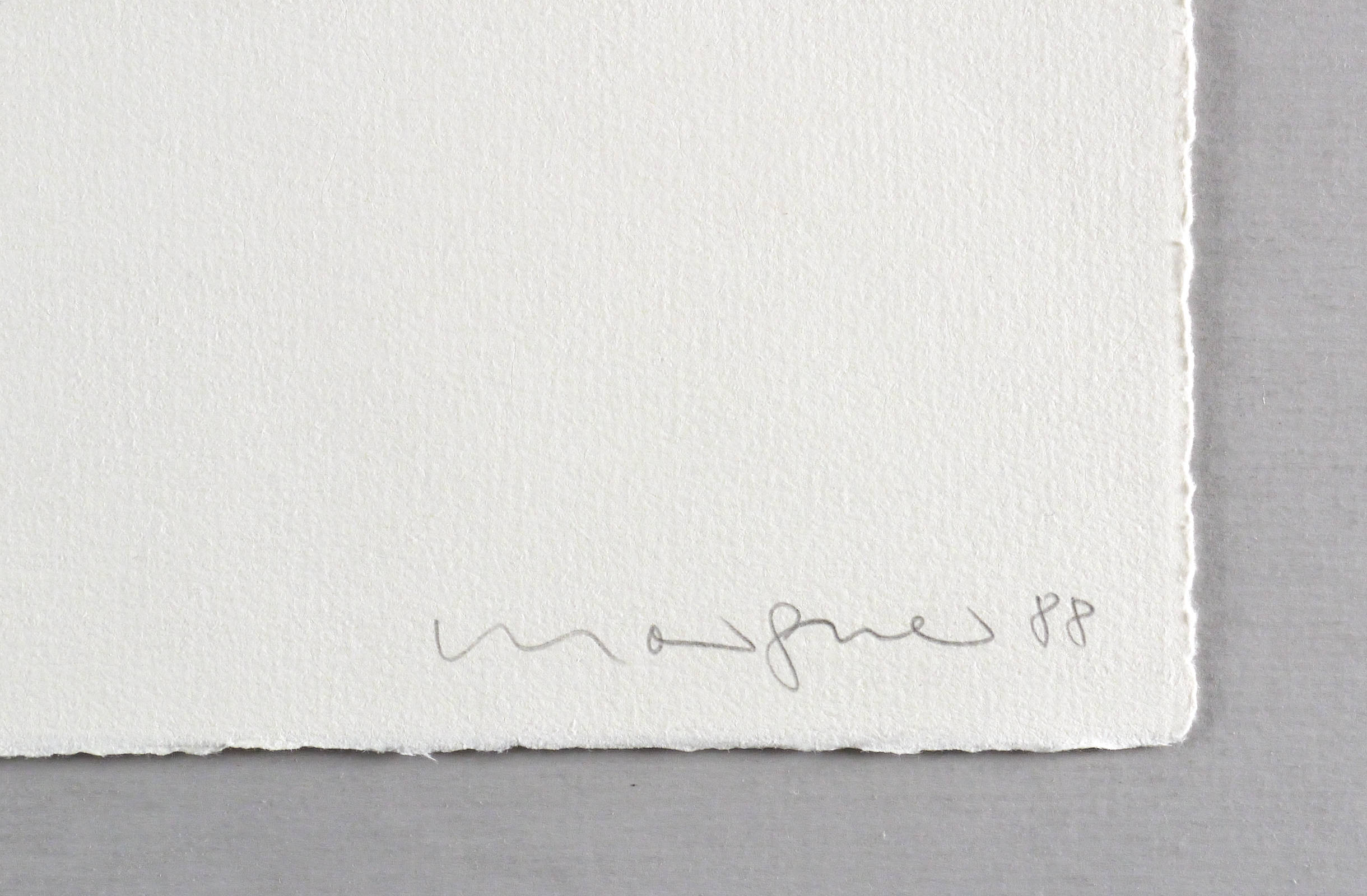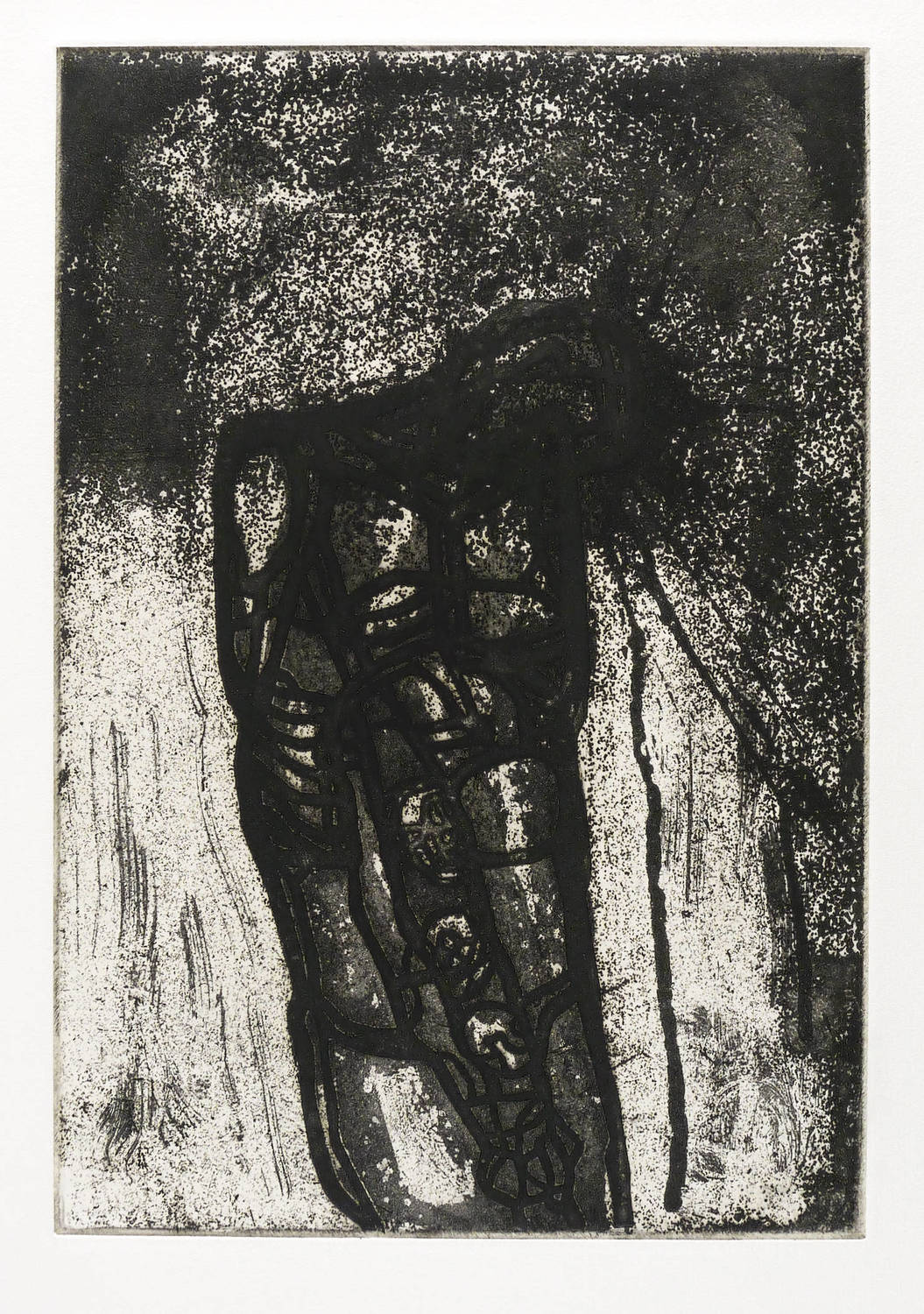 1988/1989. Radierung / Aquatinta & Reservage, in Schwarz, auf schwerem hellchamois Hahnemühle. – Originale Künstlergrafik, von Michael Morgner. – Auflage Exemplar Nr. 18/20. – 36,7 x 25,0 cm (Darstellung / Platte), 54 x 40 cm (Blatt).