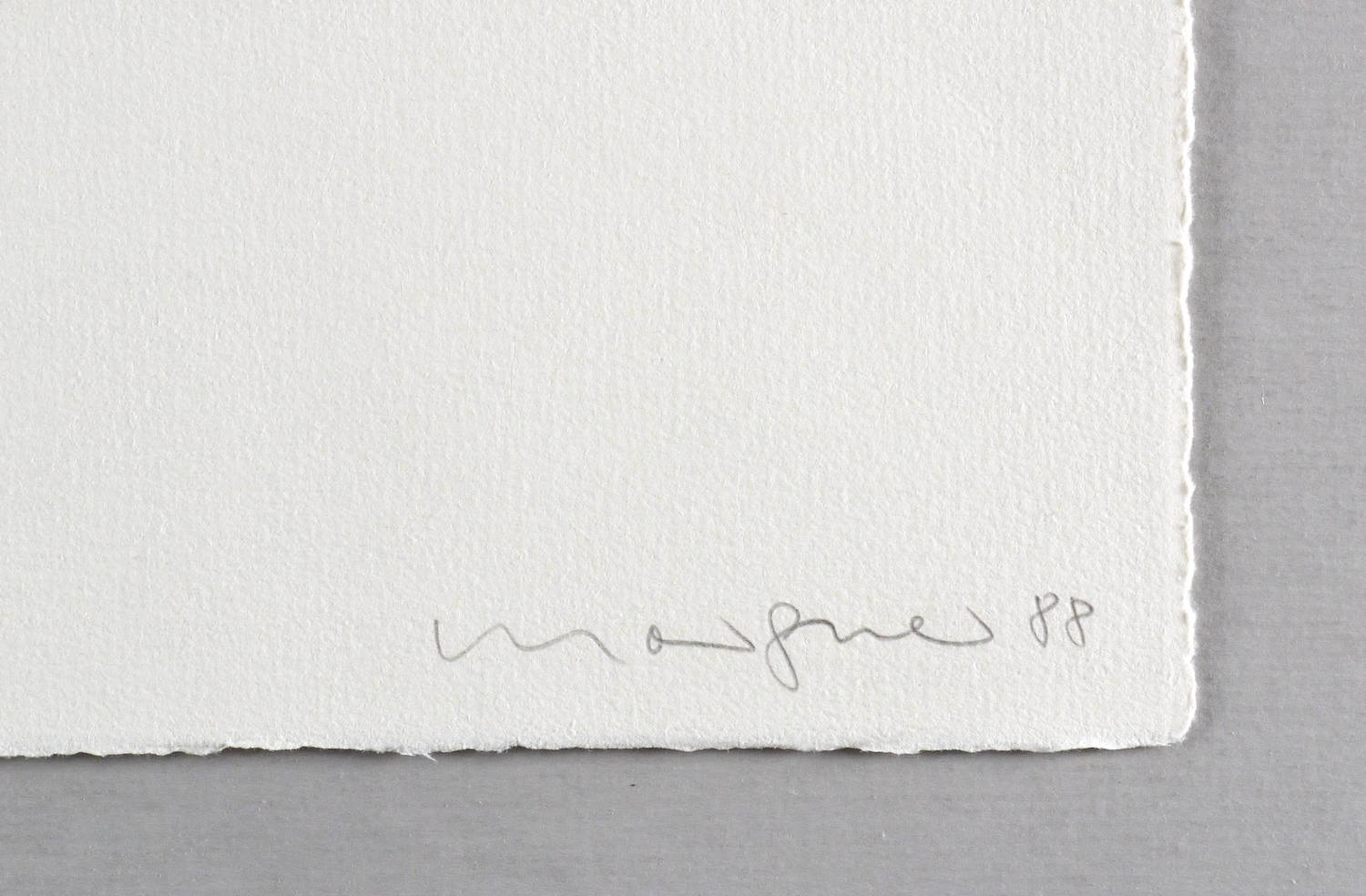 Werner-Juppe 2/89. – Rechts unten in Bleistift signiert und datiert: ″morgner 88″. Links Titel und eigenhändige Auflagenbezeichnung: ″Tod im Bauch 18/20″. Wasserzeichen der Hahnemühle. – Tadellos. Sehr guter Zustand.