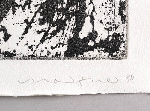 1988/1989. Radierung / Aquatinta & Reservage, in Schwarz, auf schwerem hellchamois Hahnemühle. – Originale Künstlergrafik, von Michael Morgner. – Auflage Exemplar Nr. 14/20. – 49,3 x 64,5 cm (Darstellung / Platte), 54 x 68 cm (Blatt).