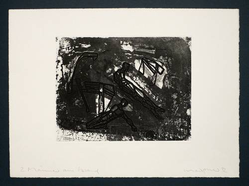 1991/1992. Radierung / Aquatinta & Reservage, in Schwarz, auf schwerem hellchamois Hahnemühle. – Originale Künstlergrafik, von Michael Morgner. – 24,5 x 31,7 cm (Darstellung / Platte), 40 x 54 cm (Blatt).