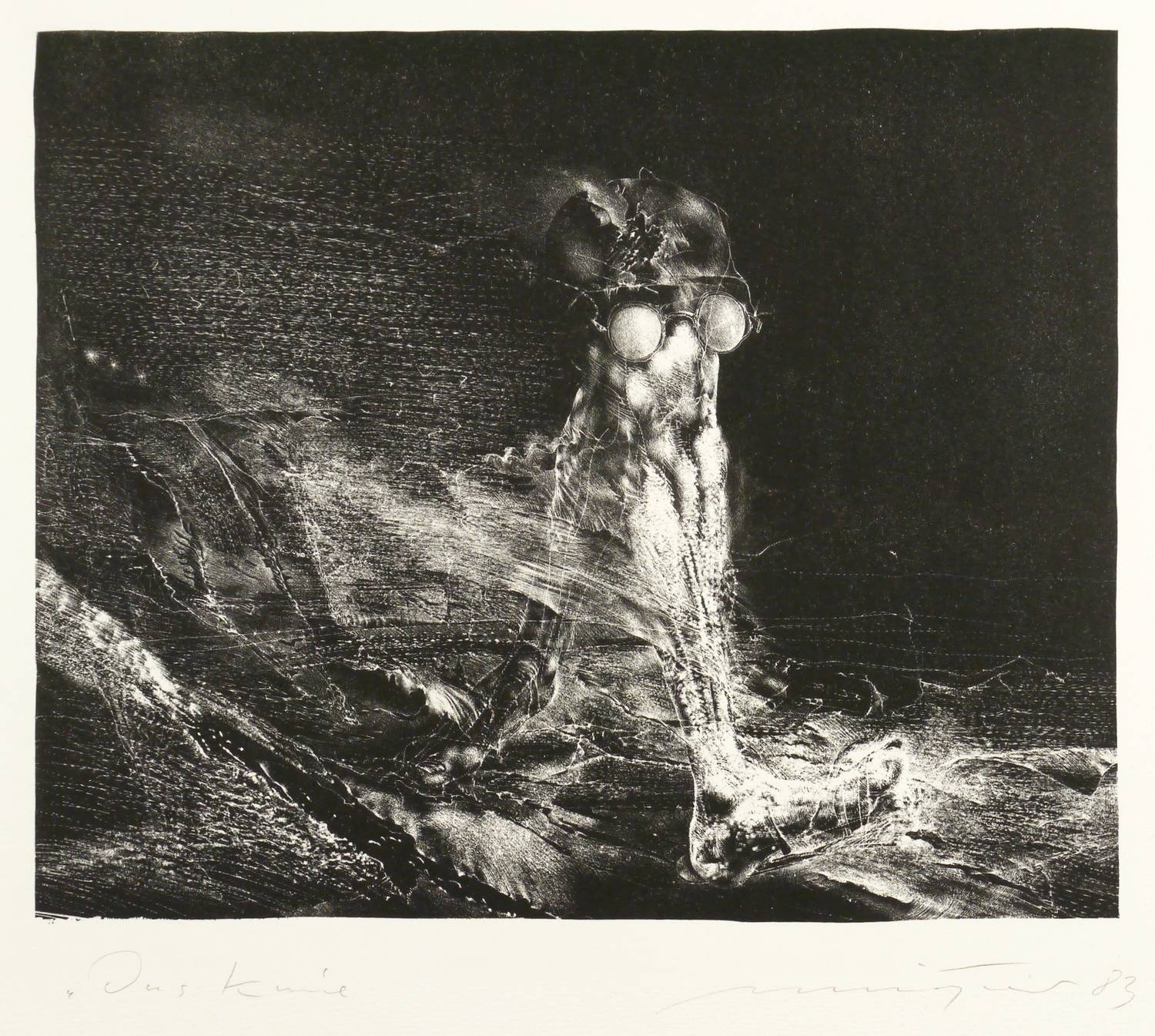 1983. Lithografie / Schablithografie, in Schwarz, auf Hahnemühle. – Originale Künstlergrafik, von Rolf Münzner. – Künstlerexemplar (e.a.). – 20,3 x 24,6 cm (Darstellung), 39,5 x 53,5 cm (Blatt).