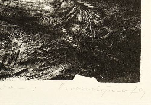 1977/1979. Lithografie / Schablithografie, in Schwarz, auf Weißenborn. – Originale Künstlergrafik, von Rolf Münzner. – Auflage Exemplar Nr. 49/50. – 28,1 x 35,7 cm (Darstellung), 34 x 48 cm (Blatt).