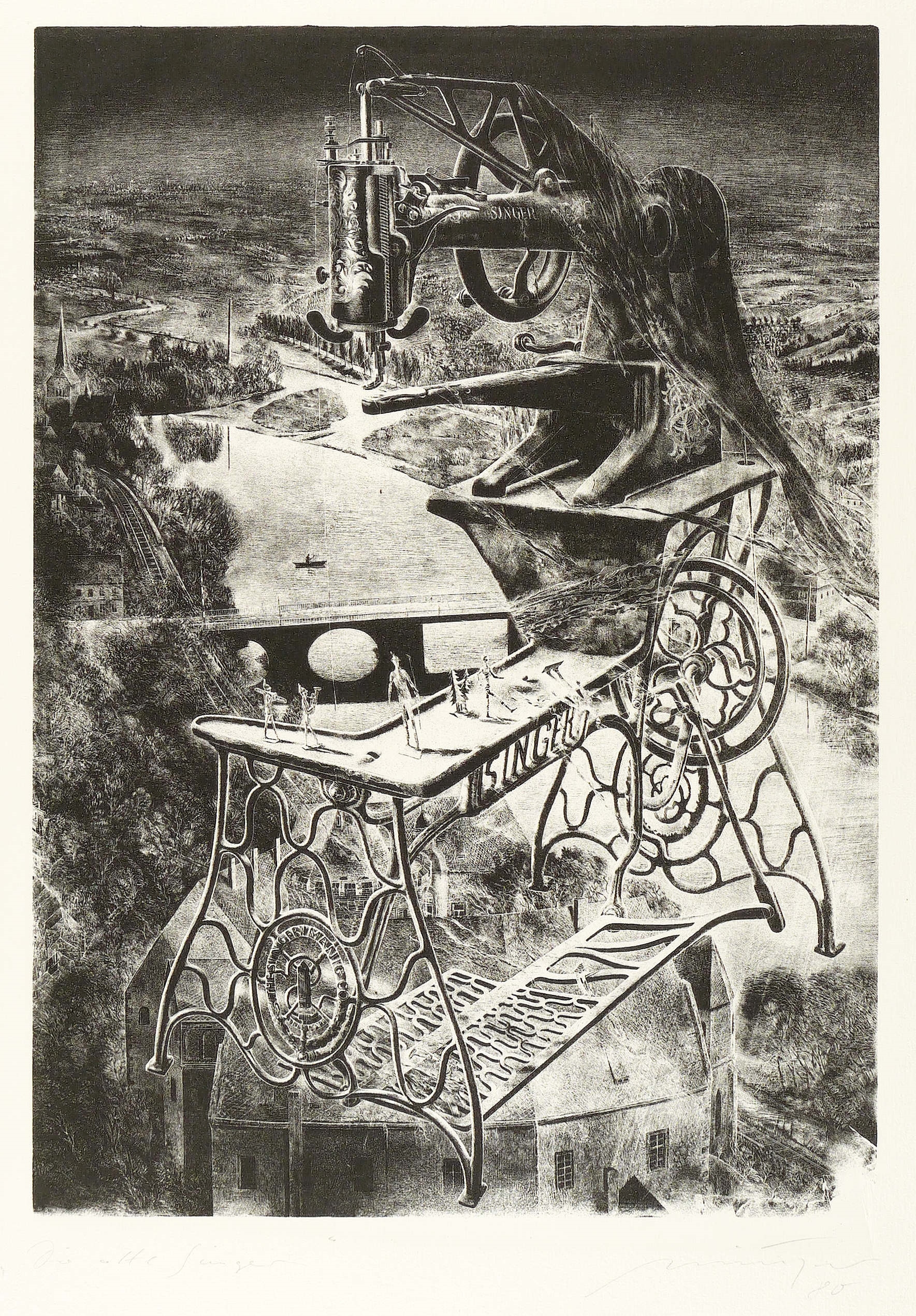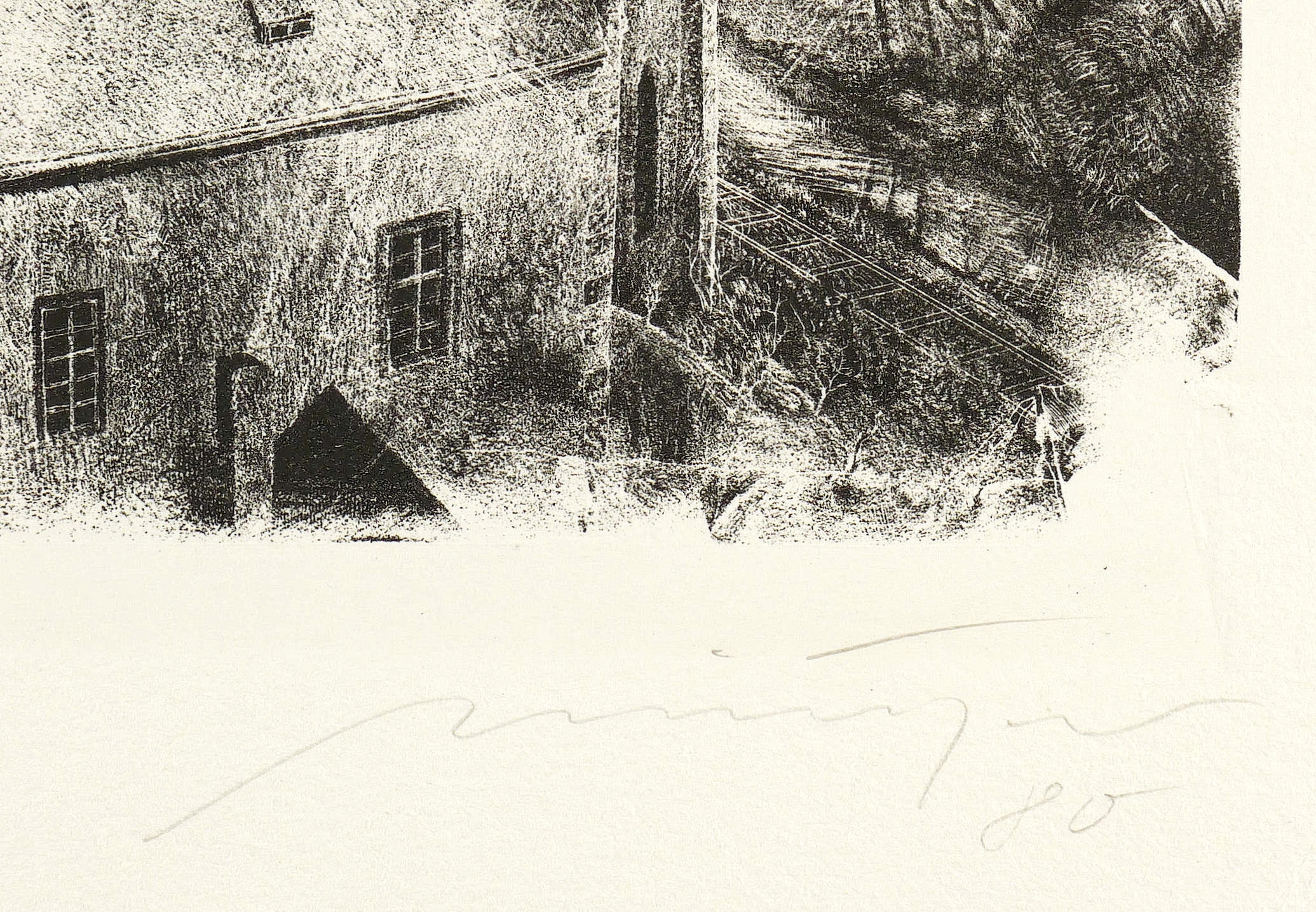 Lindner 17. Karpinski-Matuszak 87 b. – Unten rechts in Bleistift signiert und datiert: ″Münzner 80 [sic!]″. Links Titel. Am unteren Blattrand bezeichnet: ″Erinnerung an Mildenstein″. – Legendäres Blatt, welches den Ruf Rolf Münzner's als führender Grafiker in der DDR mitbegründet hat. – Diagonale Knickspur in der rechten unteren Blattecke außerhalb der Darstellung. Sonst tadellos erhalten. Guter Zustand.