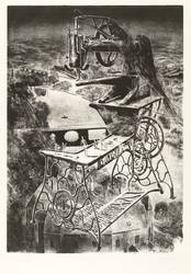 Rolf Münzner (1942 Geringswolde, lebt und arbeitet in Geithain bei Leipzig). Deutscher Zeichner und Grafiker. 1956-60 Lehre und Arbeit als Maschinenschlosser in Leisnig. 1960-62 besucht er Abendkurse an der Hochschule für Grafik und Buchkunst in Leipzig (HGB). 1962-67 Studium der Grafik und Illustration an der HGB u.a. bei Werner Tübke. 1969-72 Aspirantur. 1973-92 Lehrauftrag für Aktzeichnen und Illustration an der HGB. Seit 1990 Leiter der Werkstatt für Lithografie. Seit 1992 Professor. Seine skurrilen Figuren und bewegungsreichen Phantasiewelten werden in der seltenen Technik der Asphaltschabmanier im Steindruck umgesetzt. Detailreichtum und gesteigerte Virtuosität charakterisieren sein Werk ebenso wie eine Vorliebe für literarische Themen, denen er jeweils kongeniale Schöpfungen an die Seite stellt.