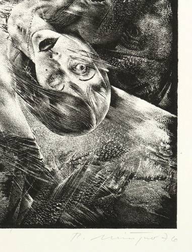 1976. Lithografie / Schablithografie, in Schwarz, auf hellem Weißenborn-Bütten. – Originale Künstlergrafik, von Rolf Münzner. – Künstlerexemplar (e.a.). – 27,4 x 19,0 cm (Darstellung / Druckbild), 40,5 x 30 cm (Blatt).