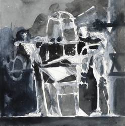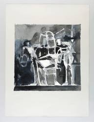 Rolf Münzner (1942 Geringswolde, lebt und arbeitet in Geithain bei Leipzig). Deutscher Zeichner und Grafiker. 1956-60 Lehre und Arbeit als Maschinenschlosser in Leisnig. 1960-62 besucht er Abendkurse an der Hochschule für Grafik und Buchkunst in Leipzig (HGB). 1962-67 Studium der Grafik und Illustration an der HGB u.a. bei Werner Tübke. 1969-72 Aspirantur. 1973-92 Lehrauftrag für Aktzeichnen und Illustration an der HGB. Seit 1990 Leiter der Werkstatt für Lithografie. Seit 1992 Professor. Seine skurrilen Figuren und bewegungsreichen Phantasiewelten werden in der seltenen Technik der Asphaltschabmanier im Steindruck umgesetzt. Detailreichtum und gesteigerte Virtuosität charakterisieren sein Werk ebenso wie eine Vorliebe für literarische Themen, denen er jeweils kongeniale Schöpfungen an die Seite stellt.