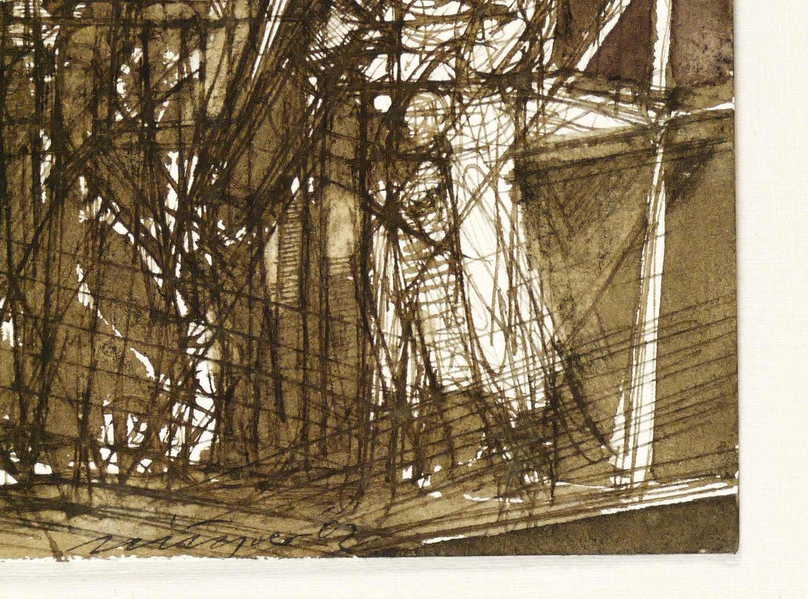 Unten mittig in Tusche signiert und datiert. Auf dem Trägerblatt unten betitelt und datiert. – Vom Künstler original auf Trägerblatt gesetzt sowie in Passepartout montiert.Sehr guter Zustand.