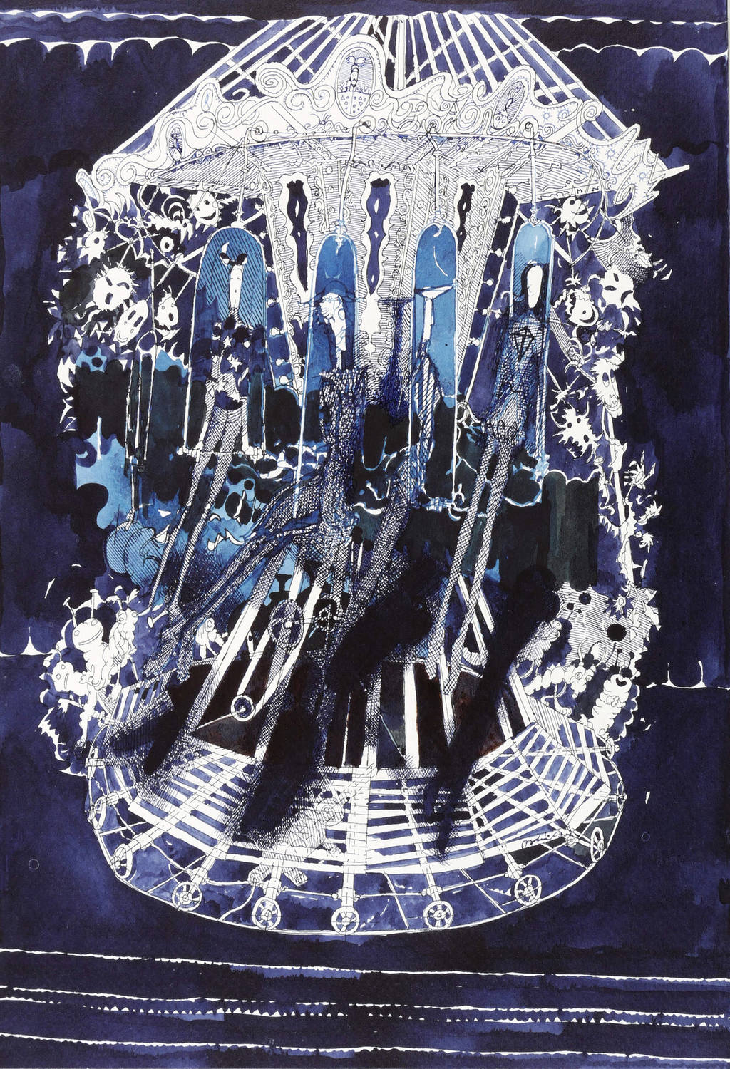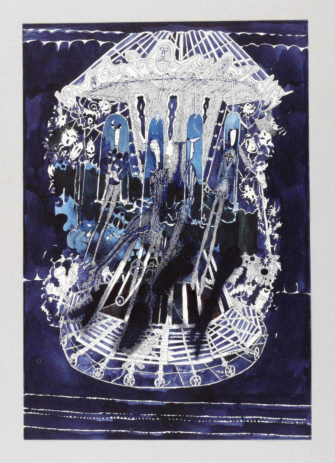 2009. Zeichnung / Feder- & Pinselzeichnung, in schwarzer & blauer Tusche, auf Büttenpapier. – Originale Künstlergrafik, von Rolf Münzner. – Unikat. – 34,5 x 23,5 cm (Darstellung / Blatt), 69,5 x 49,5 cm (Passepartout).