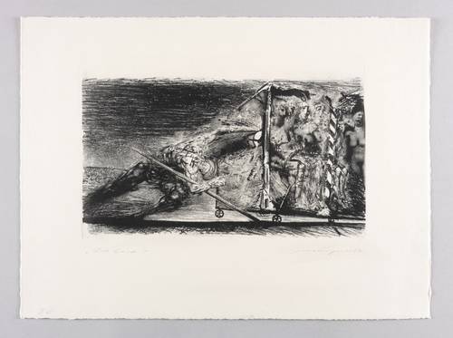 1983. Lithografie / Schablithografie, in Schwarz, auf chamois Hahnemühle. – Originale Künstlergrafik, von Rolf Münzner. – Künstlerexemplar (e.a.). – 20,8 x 37,0 cm (Darstellung / Druckbild), 40 x 54 cm (Blatt).