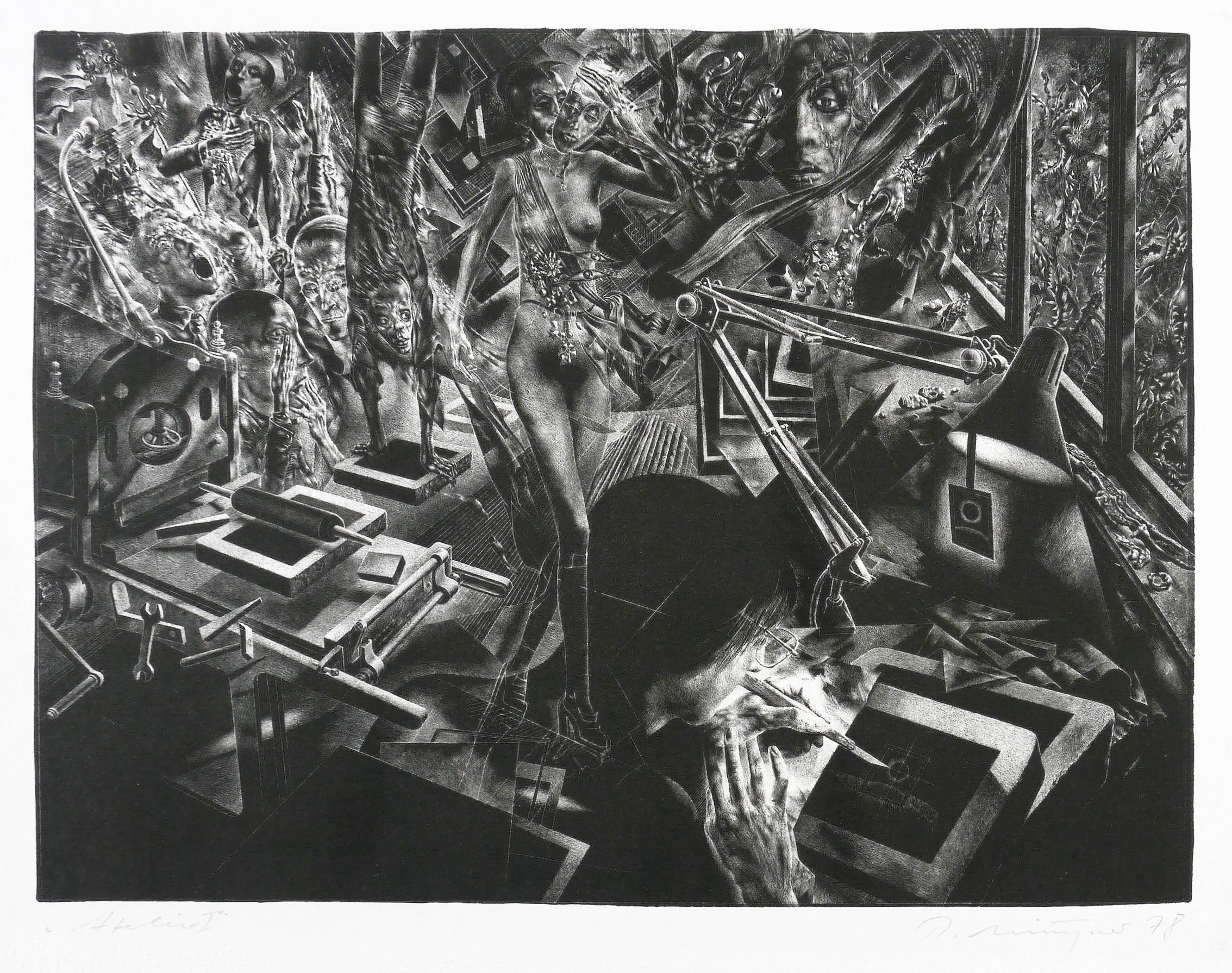 Karpinski-Matuszak 75 b (von b). – Rechts unten in Bleistift signiert und datiert: ″R. Münzner 78″. LInks Titel: ″Atelier I″. – Sehr guter Zustand.