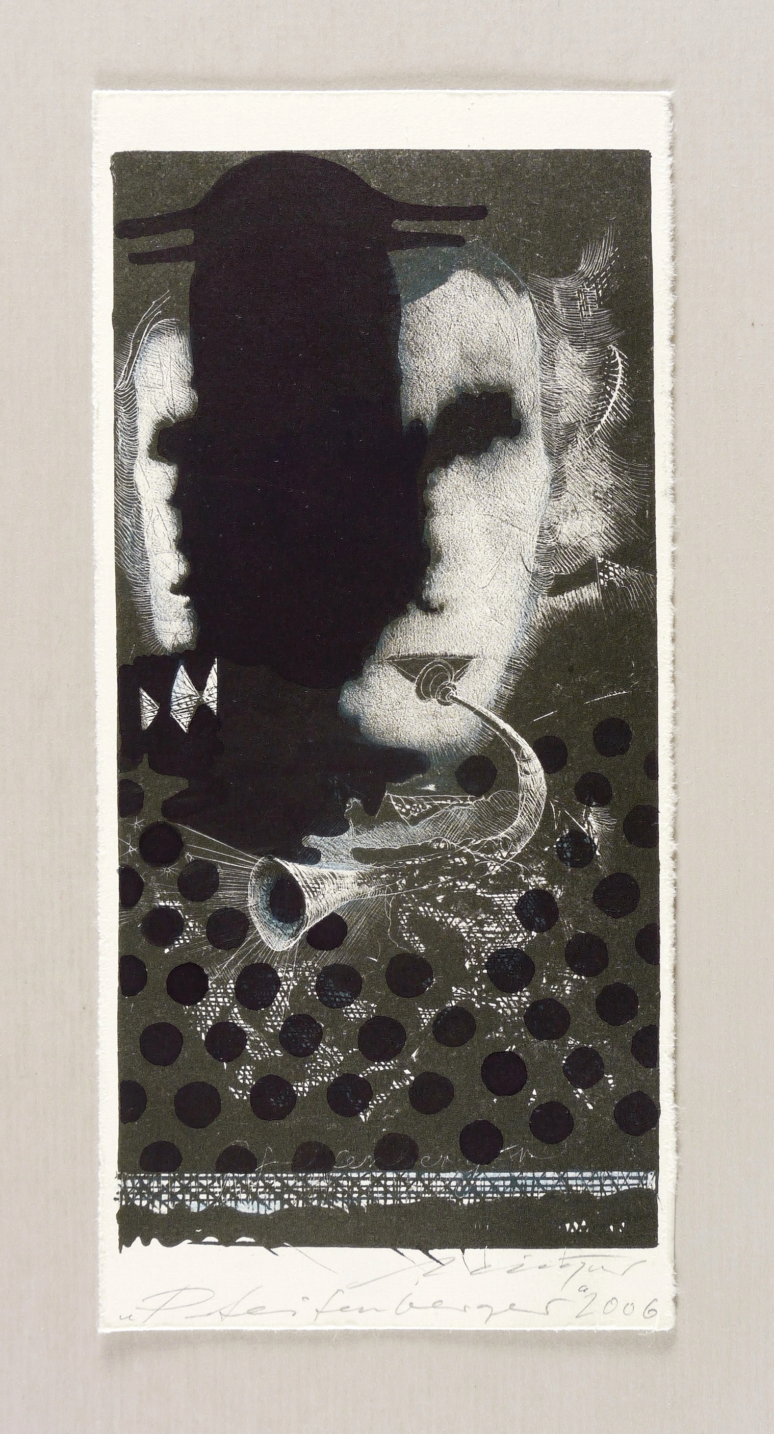Rolf Münzner (1942 Geringswolde, lebt und arbeitet in Geithain bei Leipzig). Deutscher Zeichner und Grafiker. 1956-60 Lehre und Arbeit als Maschinenschlosser in Leisnig. 1960-62 besucht er Abendkurse an der Hochschule für Grafik und Buchkunst in Leipzig (HGB). 1962-67 Studium der Grafik und Illustration an der HGB u.a. bei Werner Tübke. 1969-72 Aspirantur. 1973-92 Lehrauftrag für Aktzeichnen und Illustration an der HGB. Seit 1990 Leiter der Werkstatt für Lithografie. Seit 1992 Professor. Seine skurrilen Figuren und bewegungsreichen Phantasiewelten werden in der seltenen Technik der Asphaltschabmanier im Steindruck umgesetzt. Detailreichtum und gesteigerte Virtuosität charakterisieren sein Werk ebenso wie eine Vorliebe für literarische Themen, denen er jeweils kongeniale Schöpfungen an die Seite stellt.