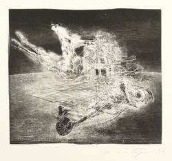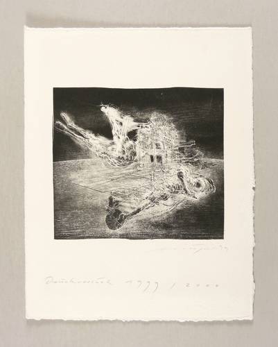 1999. Lithografie / Schablithografie, in Schwarz, auf kräftigem hellchamois Velin. – Originale Künstlergrafik, von Rolf Münzner. – Künstlerexemplar (e.a.). – 14,2 x 15,8 cm (Darstellung / Druckbild), 27 x 22 cm (Blatt).