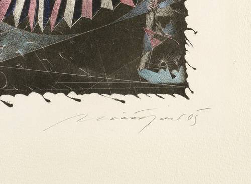 Rolf Münzner (1942 Geringswolde, lebt und arbeitet in Geithain bei Leipzig). Deutscher Zeichner und Grafiker. 1956-60 Lehre und Arbeit als Maschinenschlosser in Leisnig. 1960-62 besucht er Abendkurse an der Hochschule für Grafik und Buchkunst in Leipzig (HGB). 1962-67 Studium der Grafik und Illustration an der HGB u.a. bei Werner Tübke. 1969-72 Aspirantur. 1973-92 Lehrauftrag für Aktzeichnen und Illustration an der HGB. Seit 1990 Leiter der Werkstatt für Lithografie. Seit 1992 Professor. Seine skurrilen Figuren und bewegungsreichen Phantasiewelten werden in der seltenen Technik der Asphaltschabmanier im Steindruck umgesetzt. Detailreichtum und gesteigerte Virtuosität charakterisieren sein Werk ebenso wie eine Vorliebe für literarische Themen, denen er jeweils kongeniale Schöpfungen an die Seite stellt.