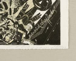 Rolf Münzner (1942 Geringswolde, lebt und arbeitet in Geithain bei Leipzig). Deutscher Zeichner und Grafiker. 1956-60 Lehre und Arbeit als Maschinenschlosser in Leisnig. 1960-62 besucht er Abendkurse an der Hochschule für Grafik und Buchkunst in Leipzig (HGB). 1962-67 Studium der Grafik und Illustration an der HGB u.a. bei Werner Tübke. 1969-72 Aspirantur. 1973-92 Lehrauftrag für Aktzeichnen und Illustration an der HGB. Seit 1990 Leiter der Werkstatt für Lithografie. Seit 1992 Professor. Seine skurrilen Figuren und bewegungsreichen Phantasiewelten werden in der seltenen Technik der Asphaltschabmanier im Steindruck umgesetzt. Detailreichtum und gesteigerte Virtuosität charakterisieren sein Werk ebenso wie eine Vorliebe für literarische Themen, denen er jeweils kongeniale Schöpfungen an die Seite stellt.