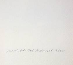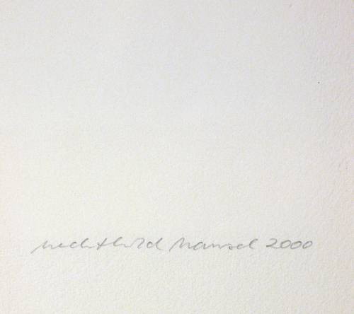 2000. Farblithografie / Kreidelithografie, in zwei Farben, auf Hahnemühle-Bütten. – Originale Künstlergrafik, von Mechthild Mansel. – Künstlerexemplar (e.a.). – 50,5 x 34,0 cm (Darstellung), 70 x 53,5 cm (Blatt).