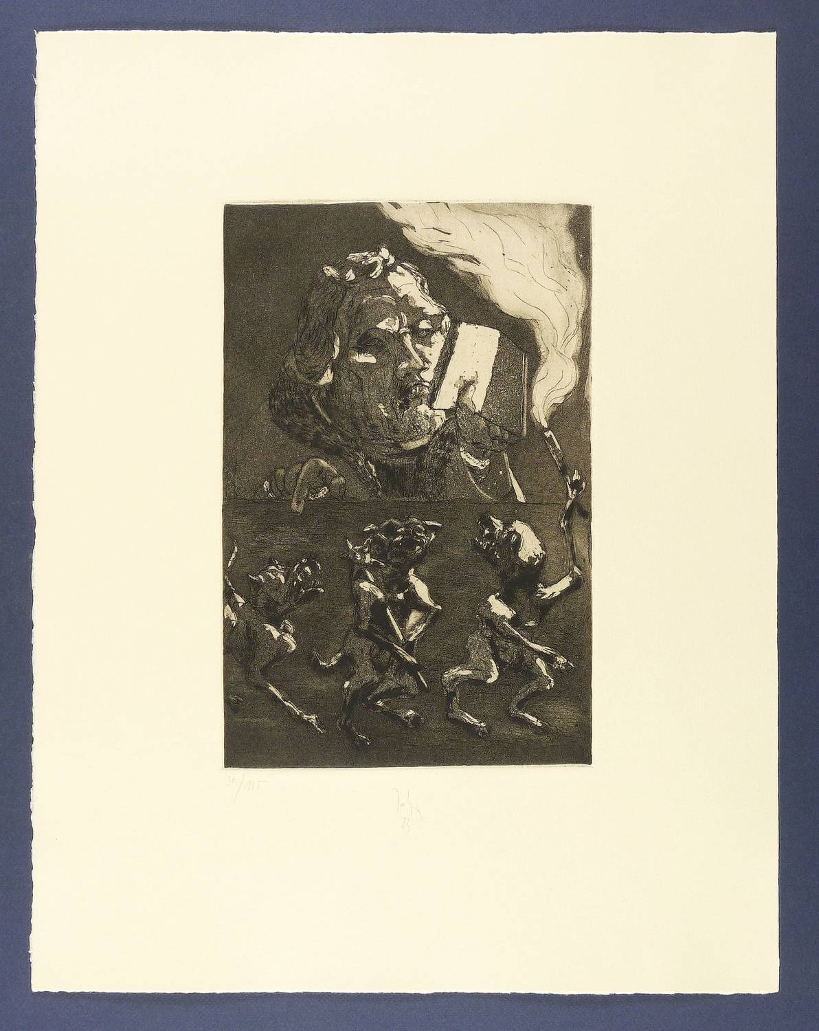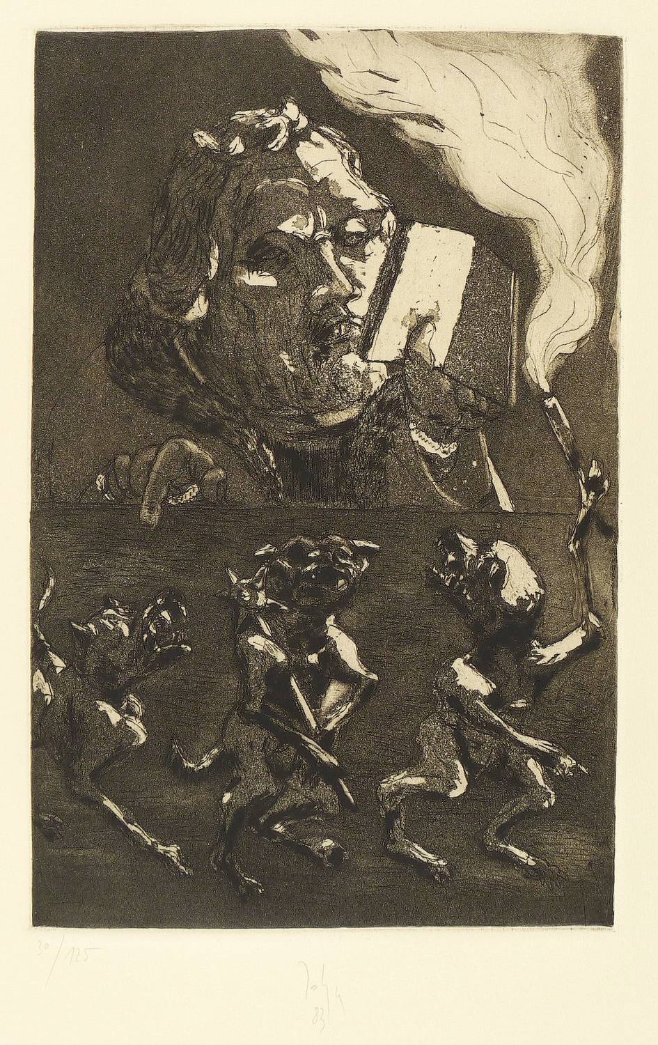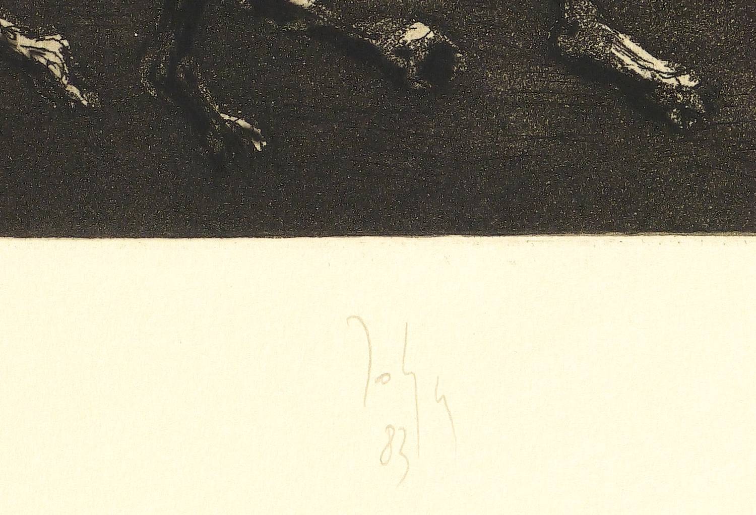 1983. Radierung / Aquatinta, auf gelblichem Bütten. – Originale Künstlergrafik, von Joachim John. – Auflage Exemplar Nr. 30/125. – 29,5 x 19,3 cm (Darstellung / Platte), 50 x 39 cm (Blatt).