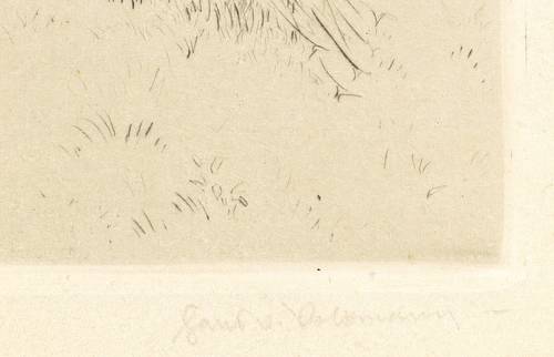 1924. Radierung / Strichätzung & Kaltnadel, mit Plattenton, in Schwarz, auf Büttenkarton. – Originale Künstlergrafik, von Hans Richard von Volkmann. – 14,3 x 10,1 cm (Darstellung), 15,1 x 10,8 cm (Platte), 32 x 24 cm (Blatt).