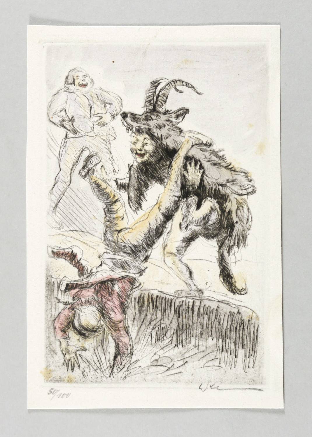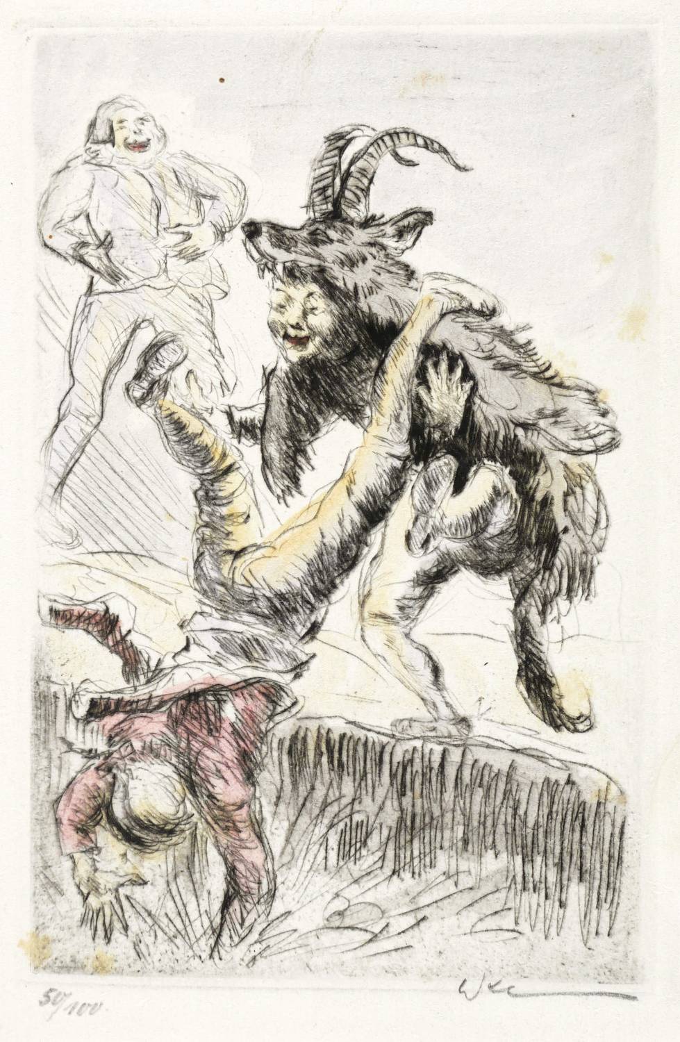1922. Radierung / Kaltnadel, in Schwarz, aquarelliert, auf Büttenpapier. – Originale Künstlergrafik, von Walther Klemm. – Auflage Exemplar Nr. 50/100. – 14,9 x 9,7 cm (Darstellung / Platte), 17 x 11 cm (Blatt).