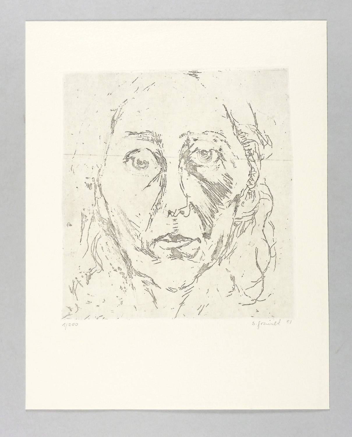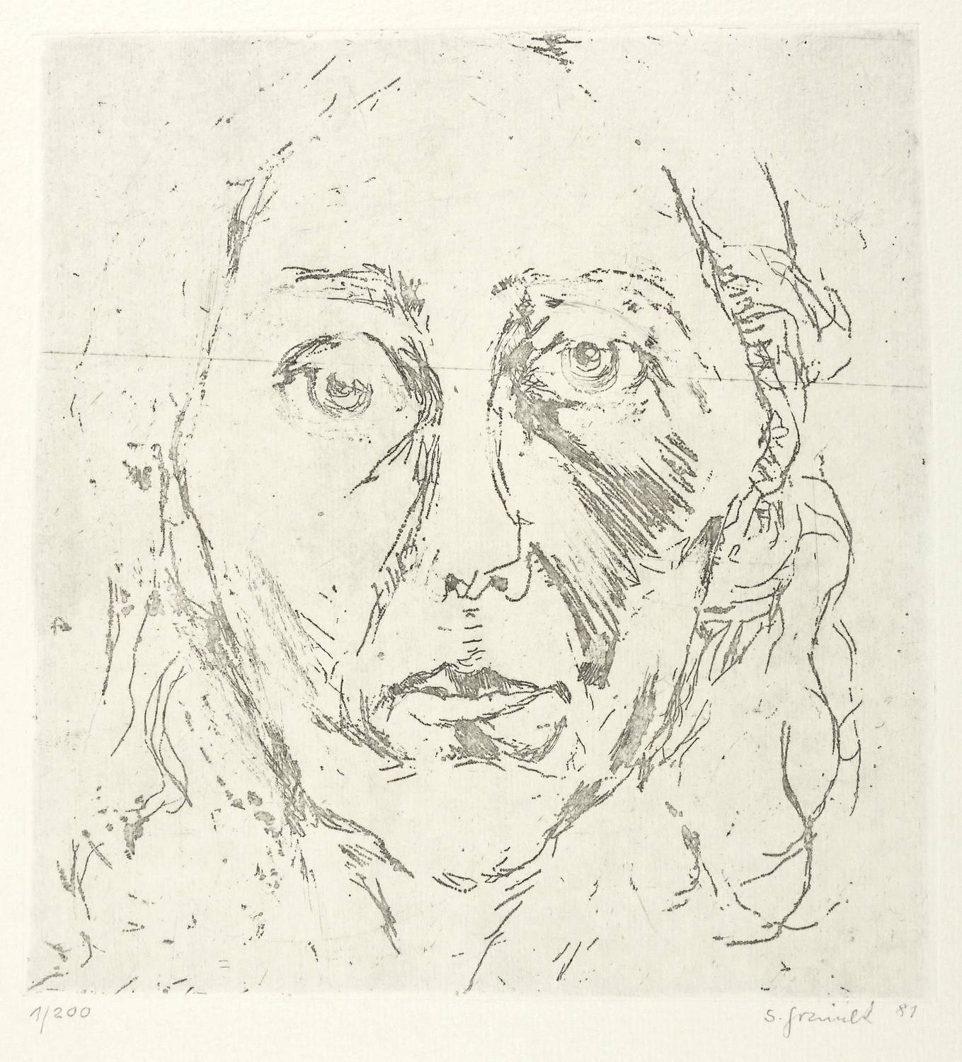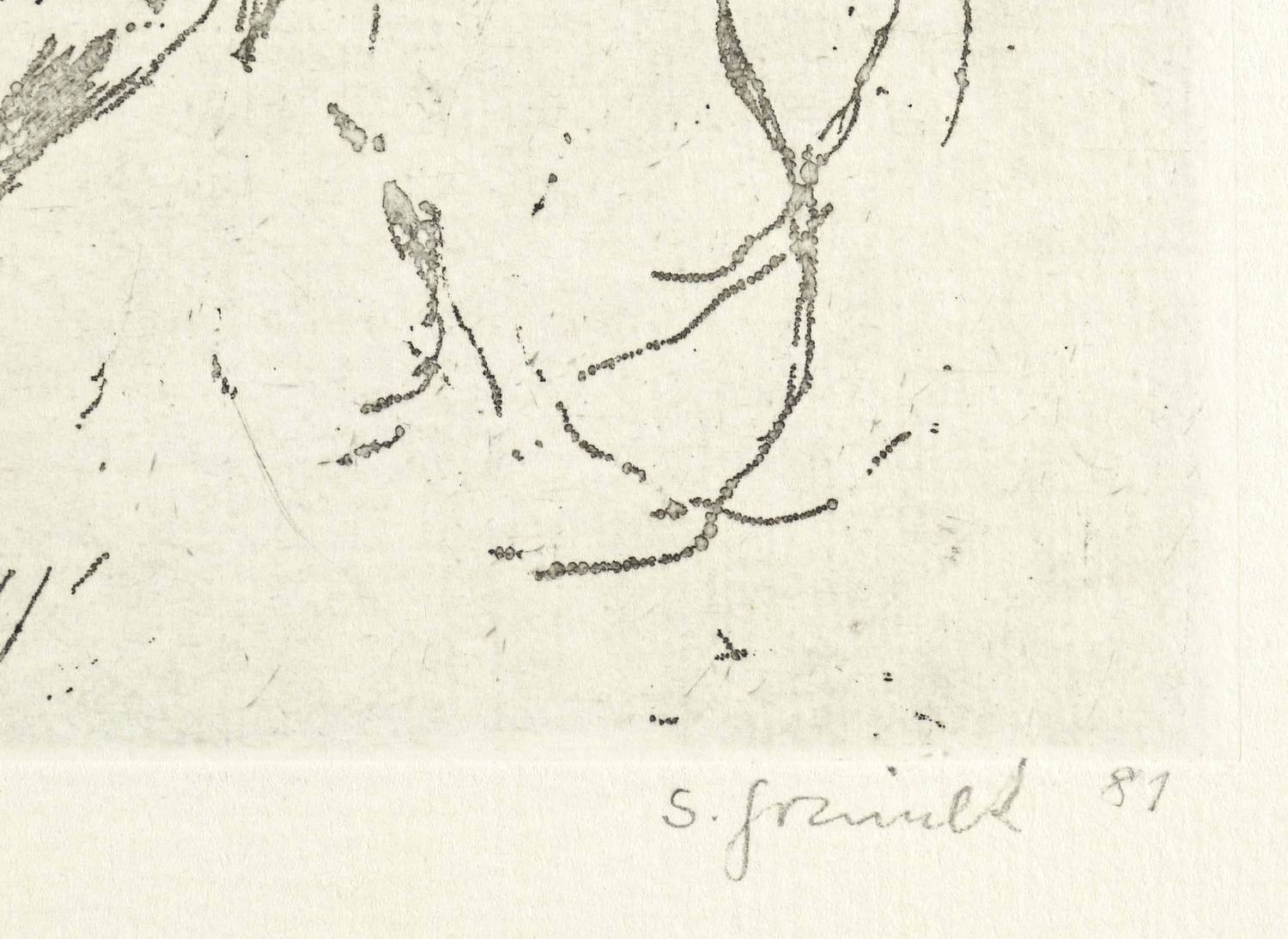 1981. Radierung / Reservage, in Schwarz, auf hellem Weißenborn. – Originale Künstlergrafik, von Sabina Grzimek. – Auflage Exemplar Nr. 1/200. – 19,7 x 18,4 cm (Darstellung / Platte), 31 x 24 cm (Blatt).