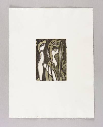 1987. Farbradierung / Aquatinta, in Hellgrau, Braun & Olivgrün, auf hellchamois Velin. – Originale Künstlergrafik, von Veit Hofmann. – Auflage Exemplar Nr. 6/25. – 13,4 x 9,8 cm (Darstellung / Platte), 35 x 27 cm (Blatt).