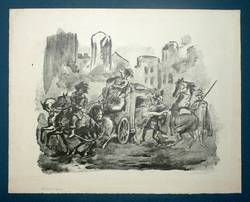 Rechts unten signiert. Links betitelt. Links unten Wasserzeichen Holland. – Papier gebräunt mit Lichtrand. Die Ecken etwas knickspurig. In der Darstellung links oben kleine Fehlstelle. Insgesamt mäßig gut erhalten.
