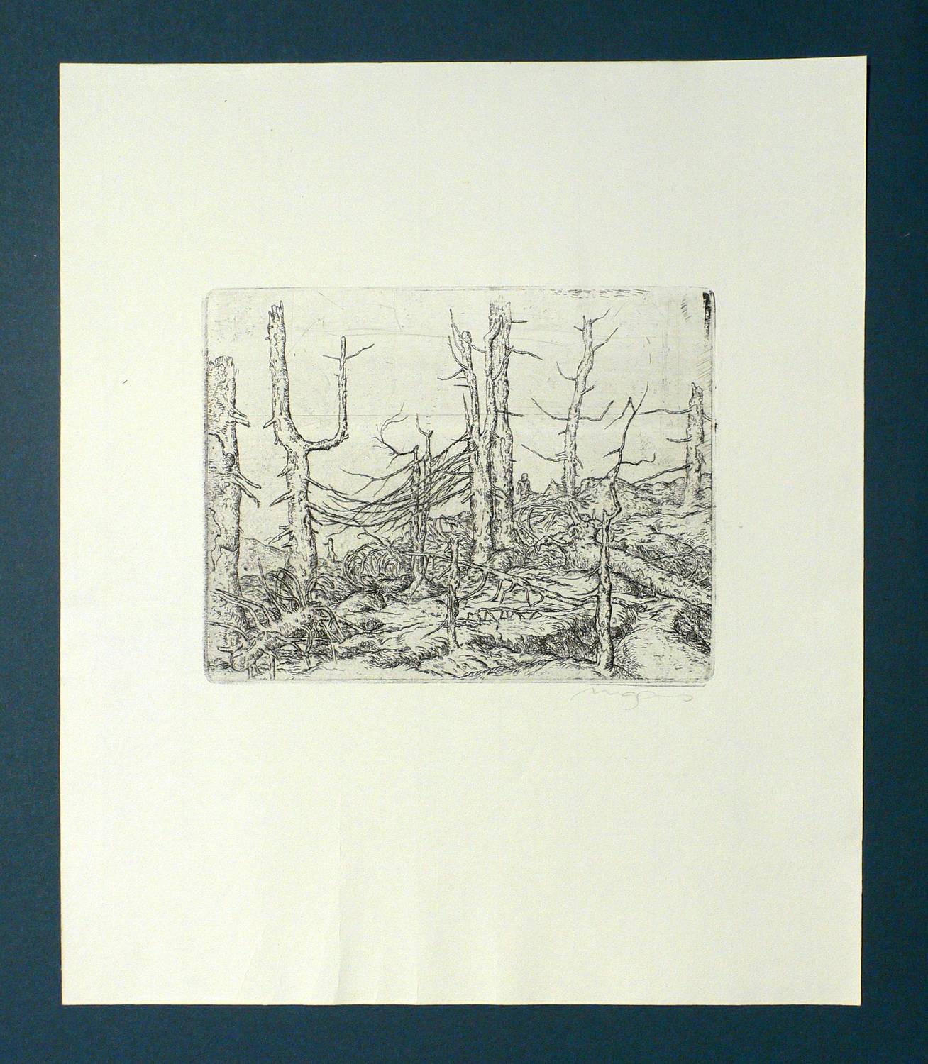 Außerhalb der Platte in Bleistift signiert unten rechts. Verso Stempel der Plauener Grafikgemeinschaft. – Am Blattrand links unten unscheinbare Quetschfalten. Insgesamt noch sehr gut erhalten.