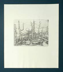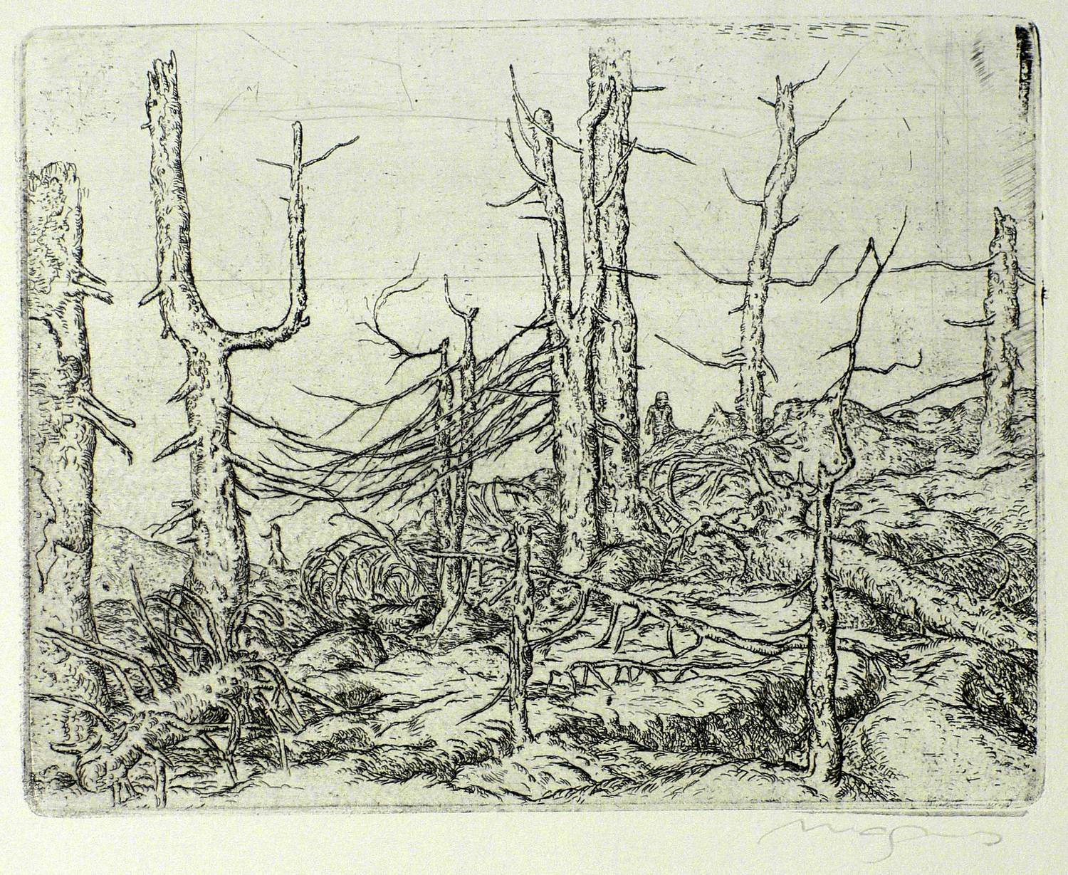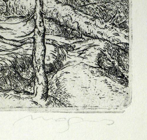 1979. Radierung / Strichätzung, in Schwarz, mit Plattenton, auf Büttenpapier. – Originale Künstlergrafik, von Klaus Magnus. – 13,5 x 17,5 cm (Darstellung / Platte), 32 x 28 cm (Blatt).
