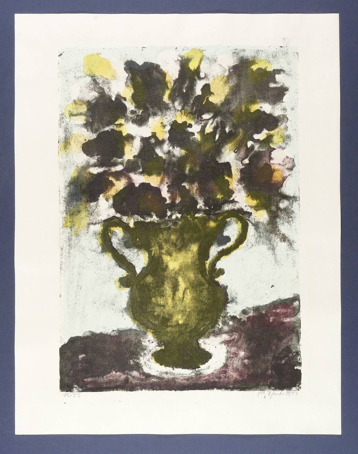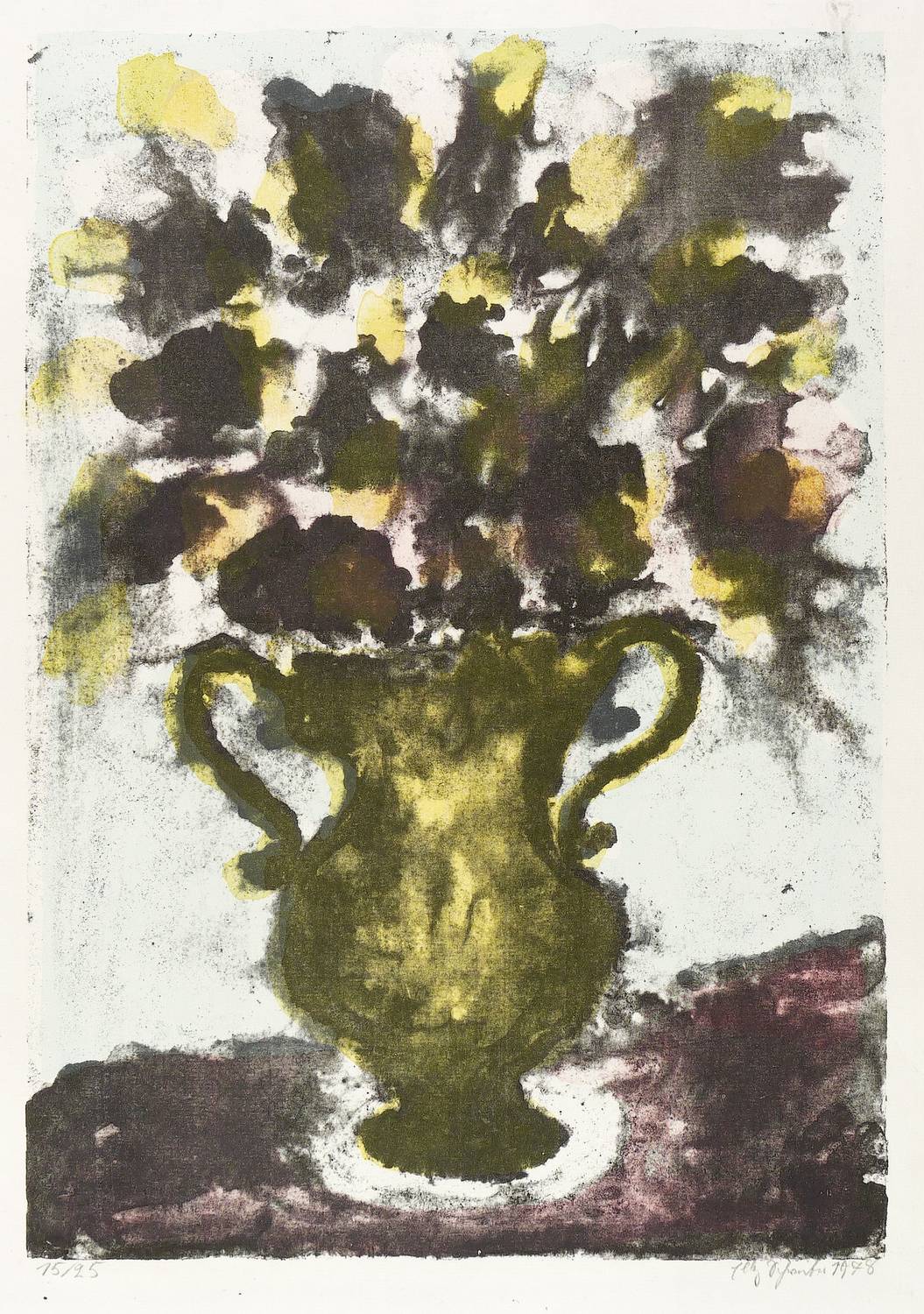 1978. Farblithografie / Pinsellithografie, in 4 Farben, auf Achat-Büttenpapier. – Originale Künstlergrafik, von Elly Schreiter. – Auflage Exemplar Nr. 15/25. – 51,8 x 35,9 cm (Darstellung), 63 x 49 cm (Blatt).