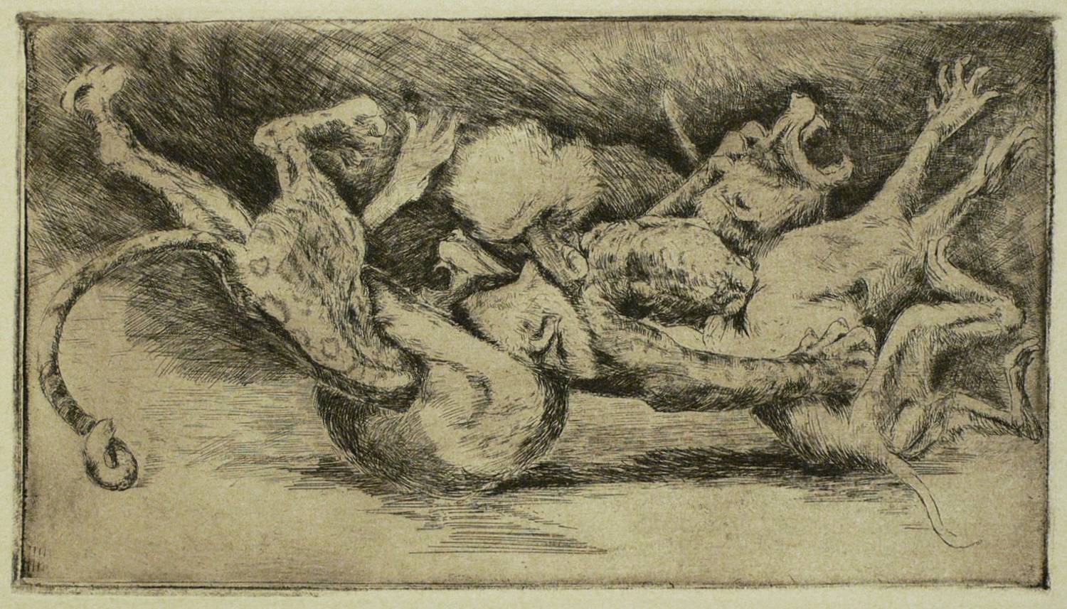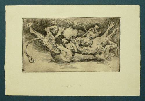 Nicht handsigniert. In Bleistift unten mittig betitelt: ″Kampfgetümmel″. – Minimal knickspurig und fingerspurig. Papier leicht gegilbt.