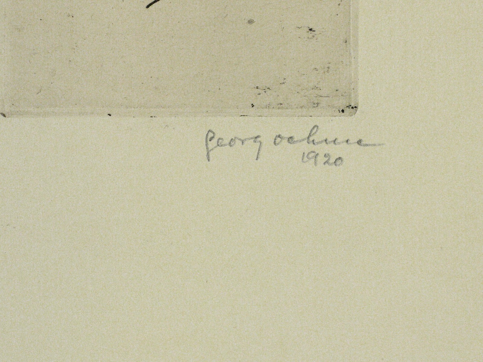 1920. Radierung / Strichätzung, in Schwarz, auf gelblichem Velin. – Originale Künstlergrafik, von Georg Oehme. – 10,0 x 7,9 cm (Darstellung / Platte), 33 x 25 cm (Blatt).
