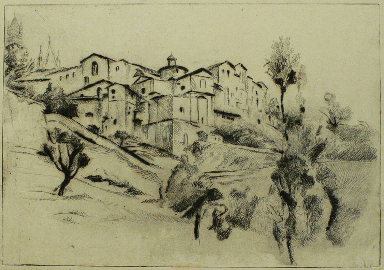 1924. Radierung / Kaltnadel, in Schwarz, auf gelblichem Velin. – Originale Künstlergrafik, von Otto Westphal. – 18,5 x 26,9 cm (Darstellung / Platte), 29 x 37 cm (Blatt).