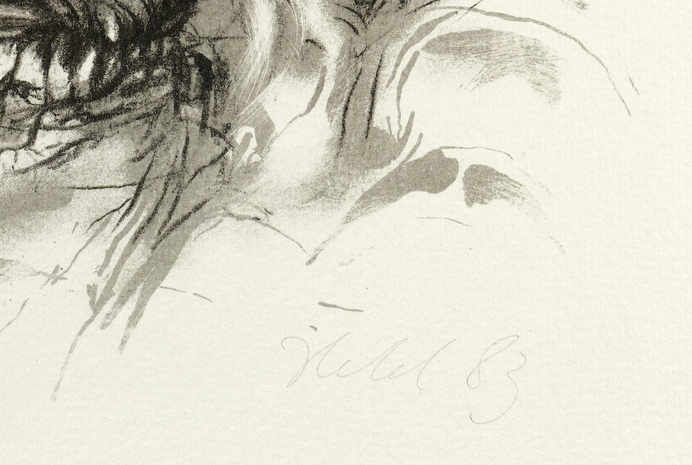 Rechts unten in Bleistift signiert und datiert. Links Auflagenbezeichnung, mittig Titel. – In den oberen Ecken außerhalb der Darstellung zwei ausgedünnte und restaurierte Partien. Insgesamt mäßig guter Zustand.