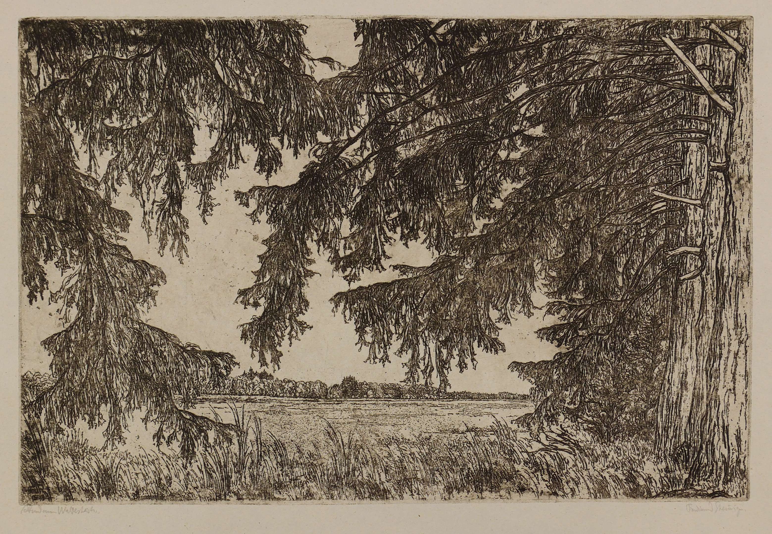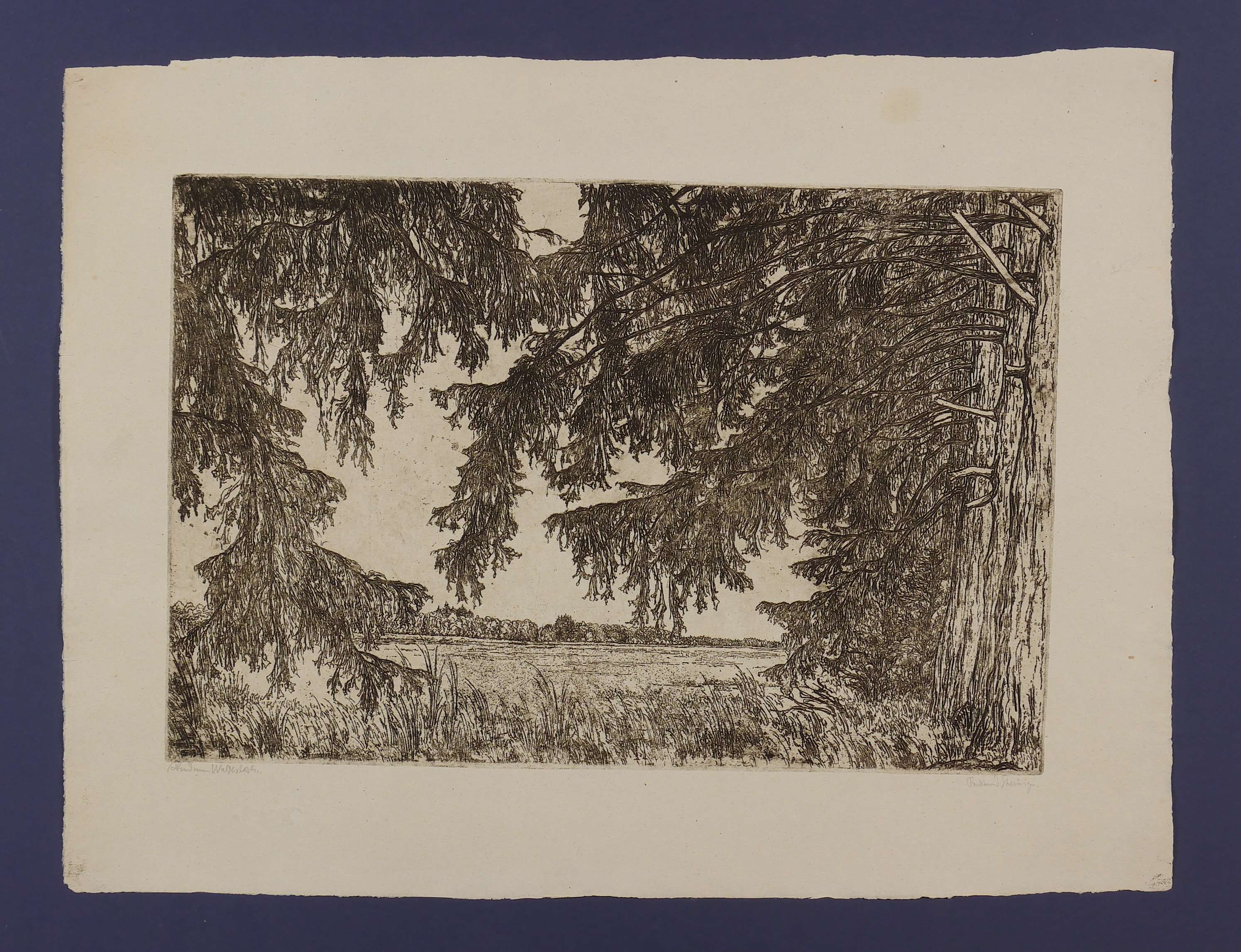 Um 1918. Radierung / Strichätzung, in Schwarzbraun, auf grobfasrigem rauem Velin. – Originale Künstlergrafik, von Ferdinand Steiniger. – 29,7 x 45,2 cm (Darstellung / Platte), 43 x 56 cm (Blatt).