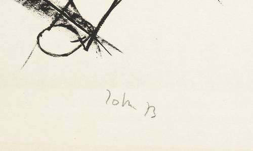 Joachim John (1933 Tetschen / Böhmen - 2018 Neu Frauenmark). Deutscher Maler, Grafiker und Autor. Ab 1955 Studium der Kunsterziehung in Greifswald, das er 1959 abbrach. Durch Fritz Cremer vermittelt 1961 Teilnahme an der Ausstellung "Junge Künstler - Malerei" in der Akademie der Künste Berlin. 1963 Meisterschüler von Hans Theo Richter in Berlin. 1966-77 freischaffend in Berlin, später in Schwerin. 1985 Käthe-Kollwitz-Preis. 1986 Mitglied der Akademie der Künste der DDR. 1990 Gastprofessur am Fachbereich Visuelle Kommunikation an der Gesamthochschule Kassel. 1991-93 Sekretär der Sektion Bildende Kunst der Akademie der Künste Berlin. 1998 Kulturpreis des Landes Mecklenburg-Vorpommern.