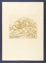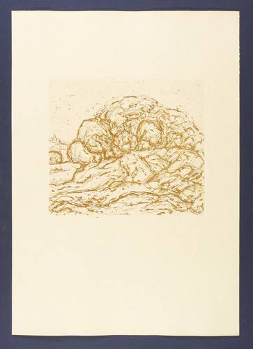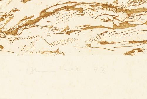 1973. Radierung / Strichätzung & Reservage, in Ocker, auf hellgelbem Karton. – Originale Künstlergrafik, von Friedrich B. Henkel. – Auflage Exemplar Nr. 31/100. – 21,5 x 24,4 cm (Darstellung / Platte), 50 x 35 cm (Blatt).