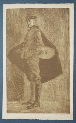 1907. Lithografie / Schablithografie, in Braun, auf gelbem Kupferdruckkarton. – Originale Künstlergrafik, von Otto Westphal. – 47,3 x 28,4 cm (Darstellung), 52 x 32 cm (Blatt).