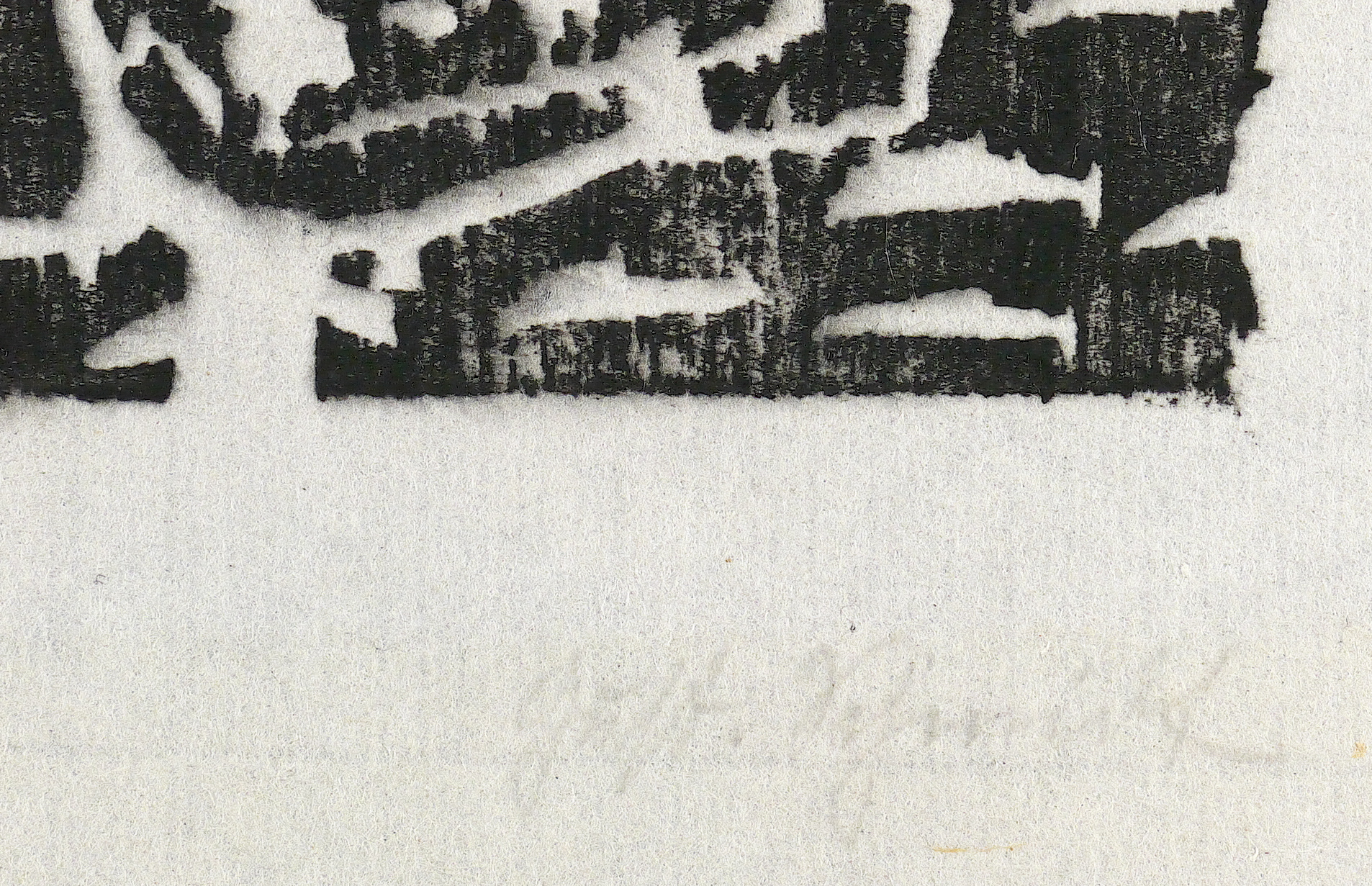 Um 1925. Holzschnitt, in Schwarz, auf Japanbütten. – Originale Künstlergrafik, von Gustav Schmidt. – 33,8 x 24,6 cm (Darstellung / Druckstock), 44 x 34 cm (Blatt).