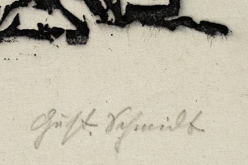 1924. Holzschnitt, in Schwarz, auf rauem Japanbütten. – Originale Künstlergrafik, von Gustav Schmidt. – 36,0 x 28,0 cm (Darstellung / Druckstock), 50 x 34 cm (Blatt).