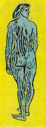 Trägerpapier verso in Bleistift signiert, betitelt und datiert. Dazu bezeichnet: ″Gipsstock - Farbhanddruck″. – Seltenes Hochdruckverfahren, bei dem die Druckform in Gips hergestellt, die Darstellung negativ geschabt und der Druck im Handreibeverfahren abgezogen wird. – Original auf Trägerpapier montiert. Verso Reste einer ehemaligen Montierung. Trägerpapier etwas gegilbt und mit leichten Randmängeln. Insgesamt gut erhalten.