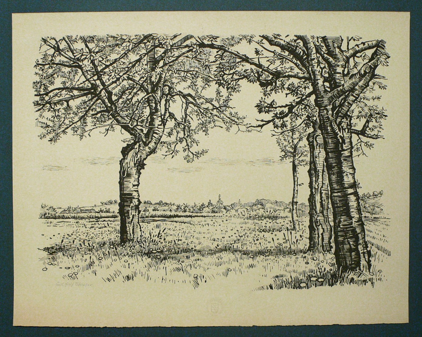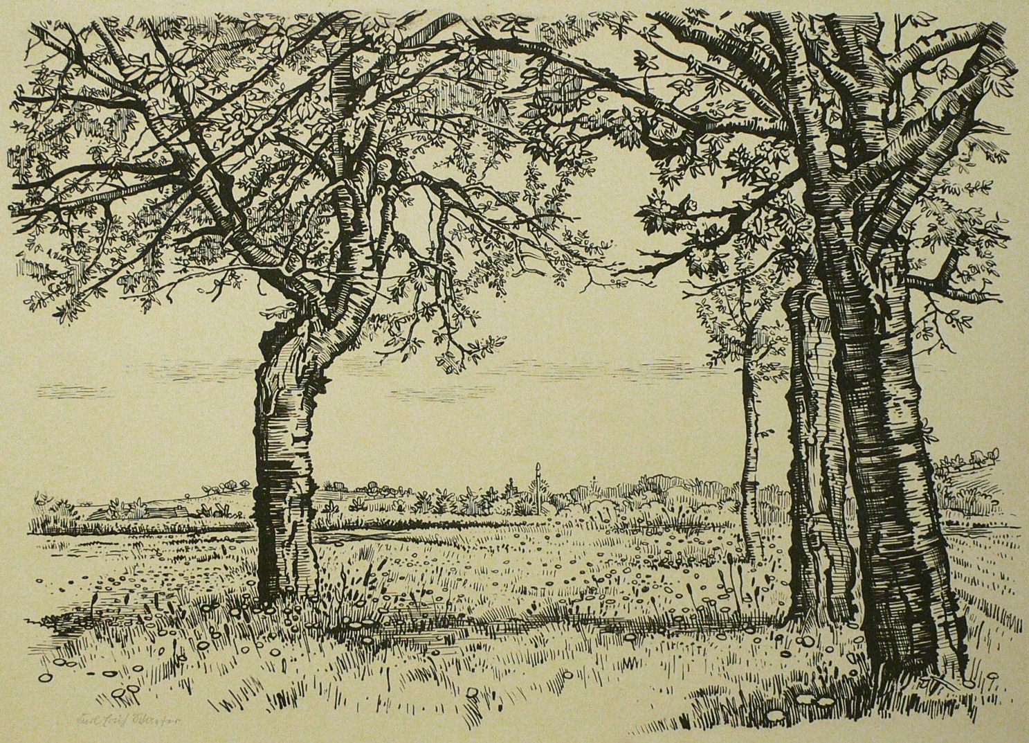 Schäfer, Karl Erich. – „Wiesenaue mit Obstbäumen”.